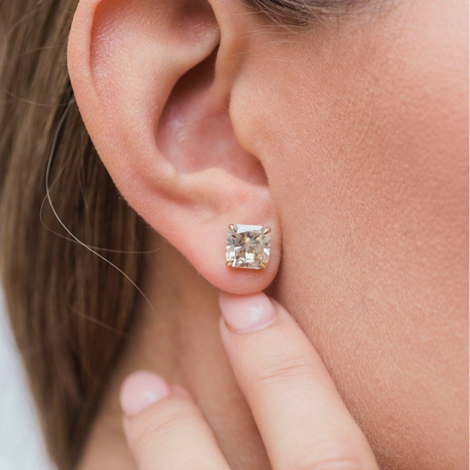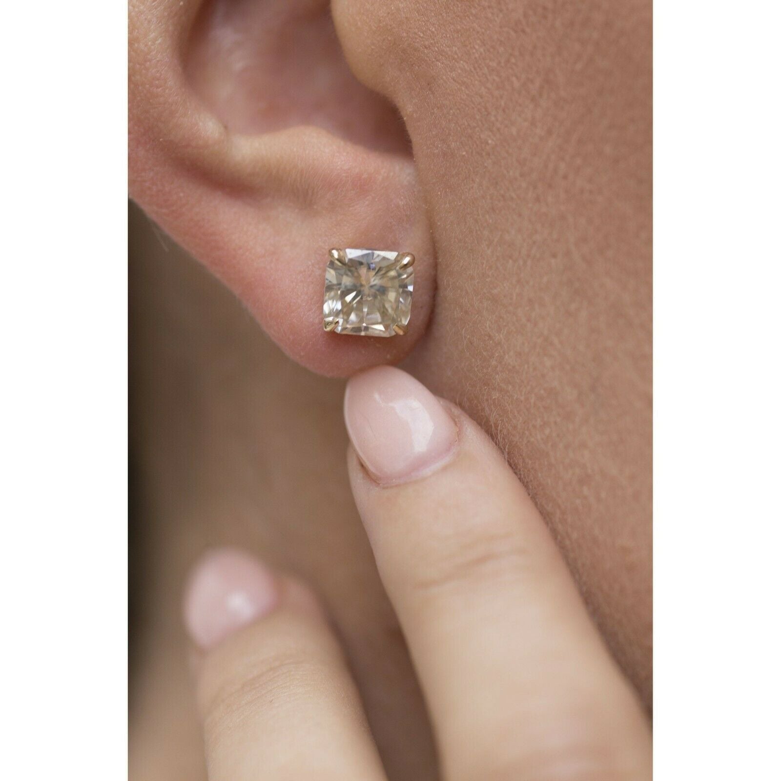 2.4ct Cushion Cut VVS1D Diamond Solitaire Stud Earrings 14k Yellow Gold Finish