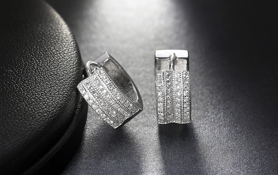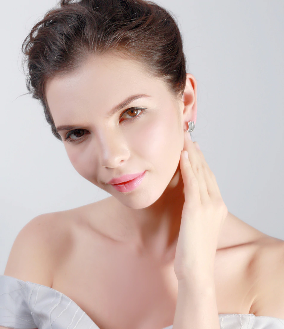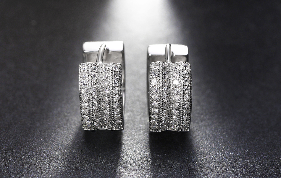 2.4ct Round Cut Diamond Two Row Design Women Hoop Earrings 14k White Gold Finish