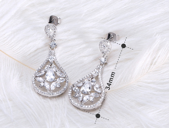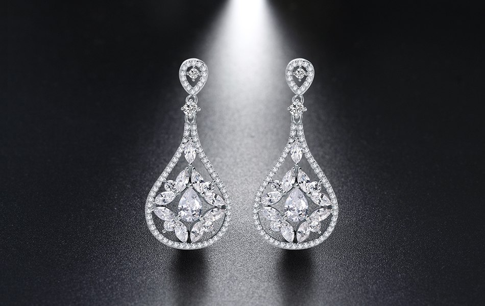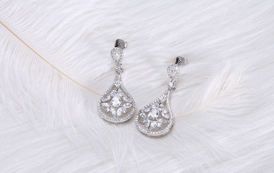 2.9ct Pear Cut VVS1D Diamond Wedding Water Drop Earrings 14k White Gold Finish