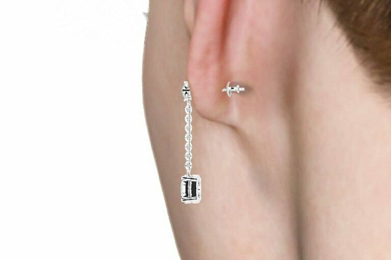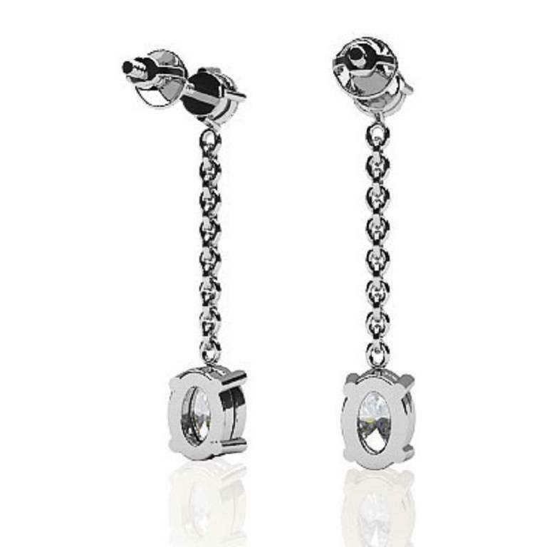 2ct Oval Round Cut Chain Vertical Drop Dangle Earring Women 14k WhiteGold Finish