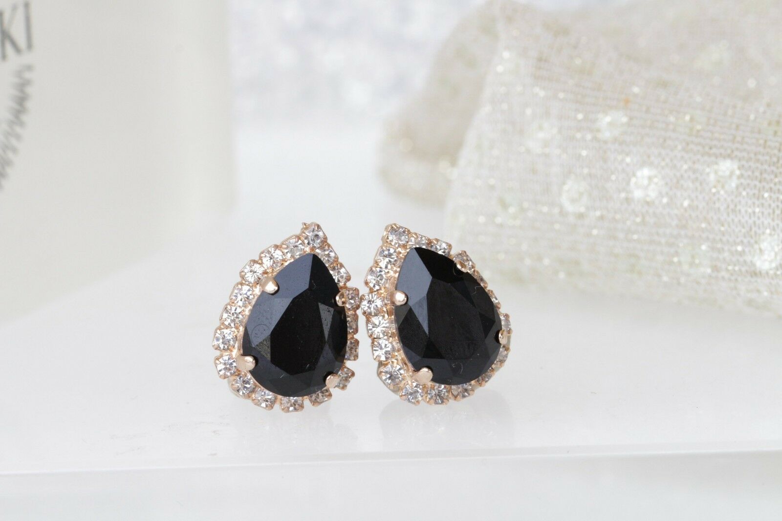 2ct Pear Cut Black Diamond Halo Stylish Stud Earrings Women 14k Rose Gold Finish