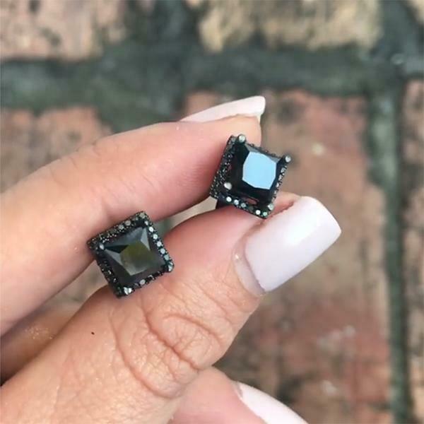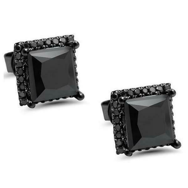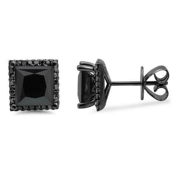 2Ct Princess Cut Black Diamond Halo Solitaire Stud Earrings 14K Black Gold Over