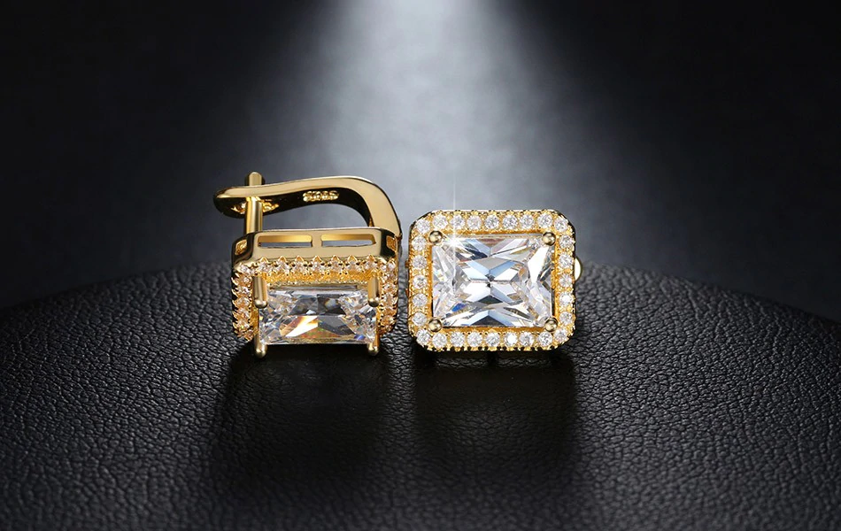 2ct Radiant Cut VVS1 Diamond Halo Solitaire Drop Earrings 14k Yellow Gold Finish