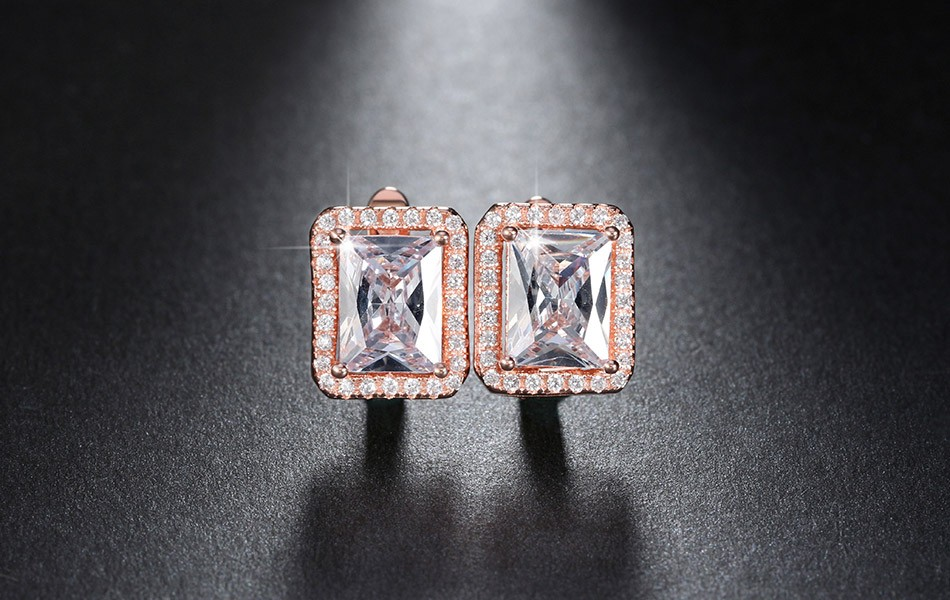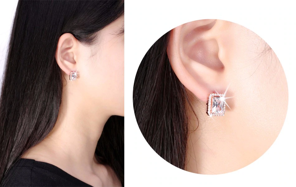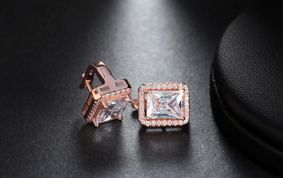 2ct Radiant Cut VVS1D Diamond Halo Solitaire Drop Earrings 14k Rose Gold Finish