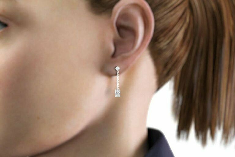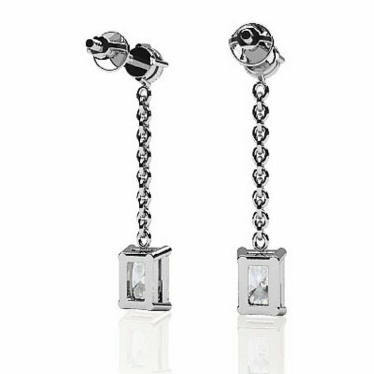 2ct Radiant Round Chain Vertical Drop Dangle Earring Women 14k White Gold Finish