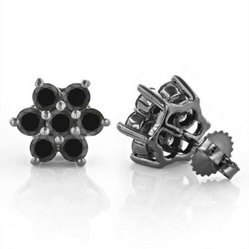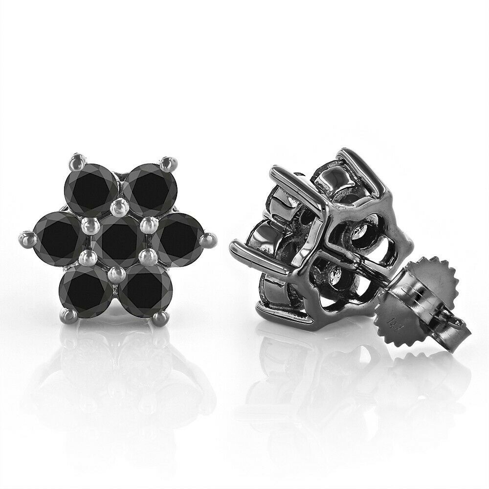 2Ct Round Cut Black Diamond Floral Cluster Stud Earrings 14K Black Gold Finish