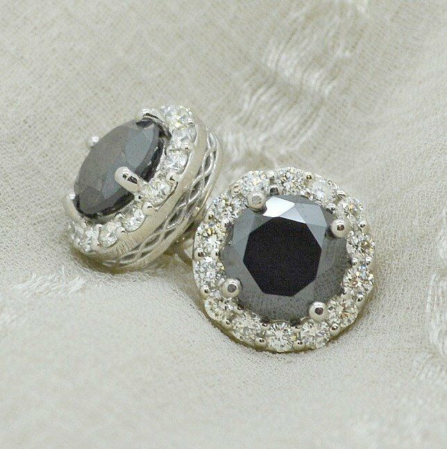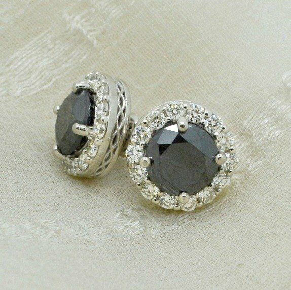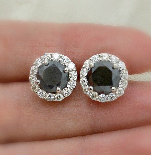 2ct Round Cut Black Diamond Halo Unique Women Stud Earring 14k White Gold Finish