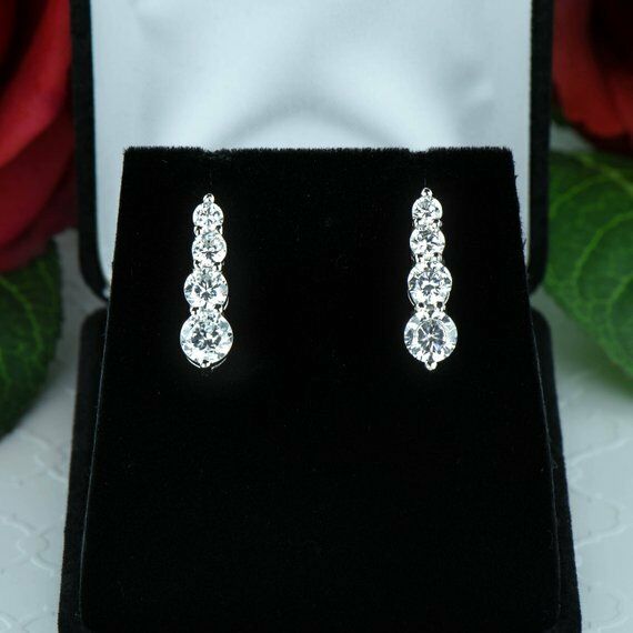 2ct Round Cut Diamond 4 Stone Straight Drop Earrings Women 14k White Gold Finish