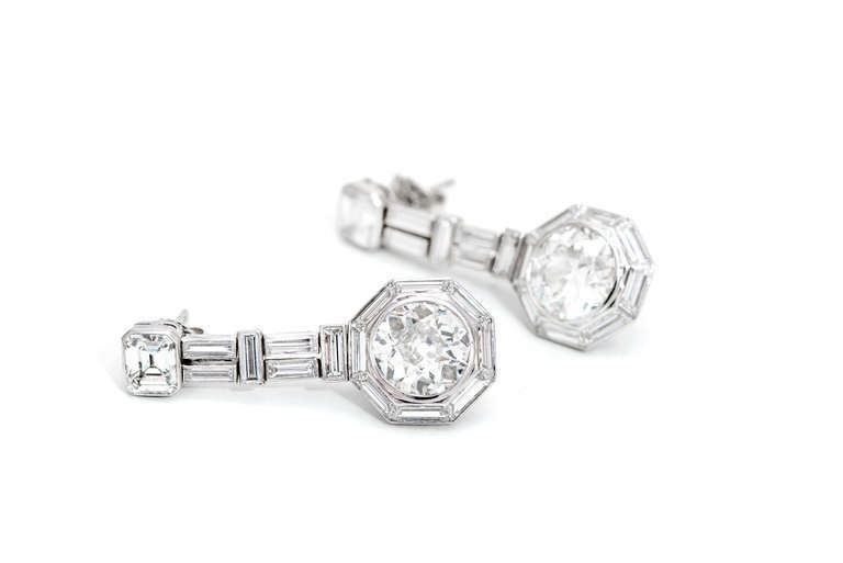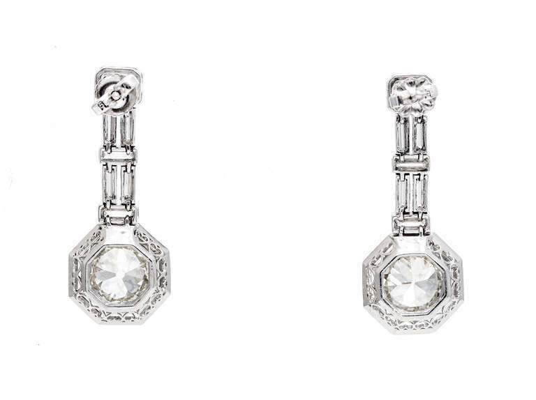 2ct Round Cut Diamond Art Deco Baguette Accent Drop Earrings 14k White Gold Over