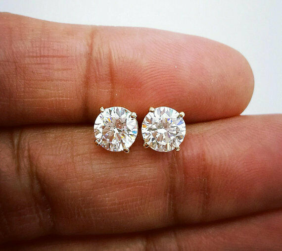 2Ct Round Cut VVS1 Diamond Classic Solitaire Stud Earrings 14K White Gold Finish