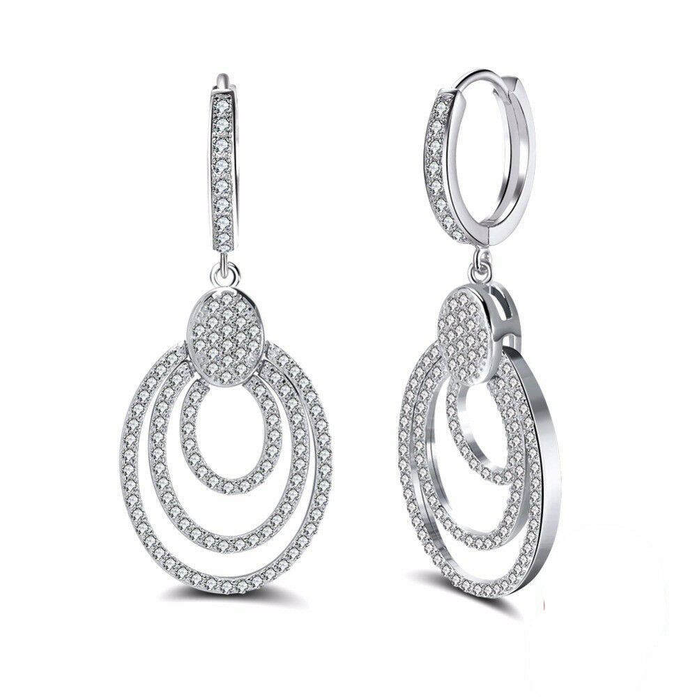 2ct Round Cut VVS1D Diamond Big Round Hollow Dangle Earrings 14k White Gold Over