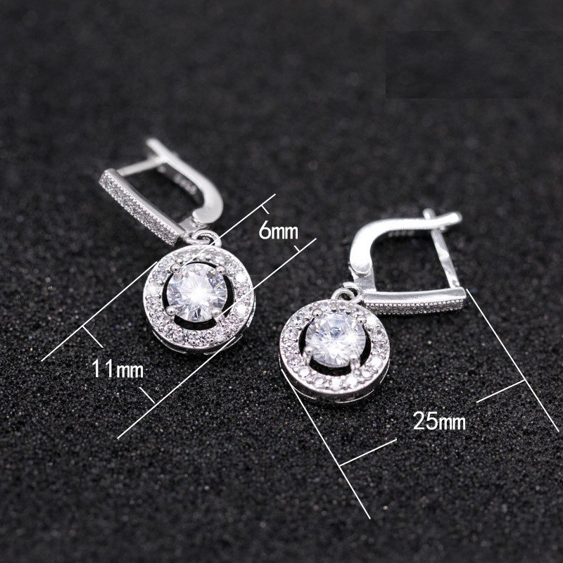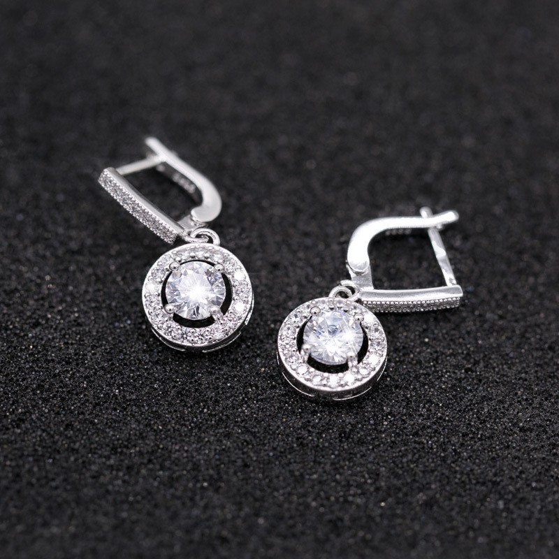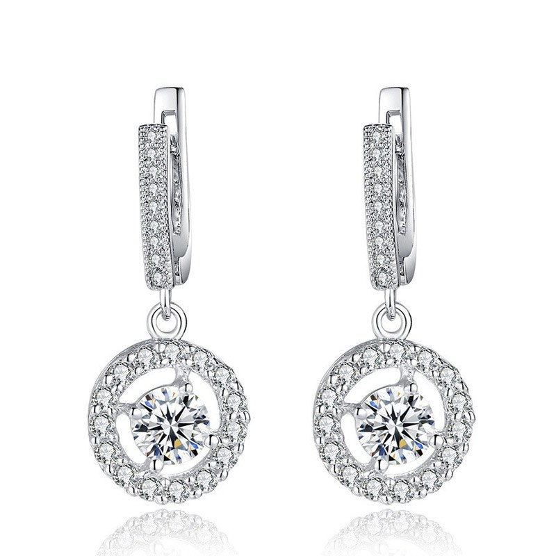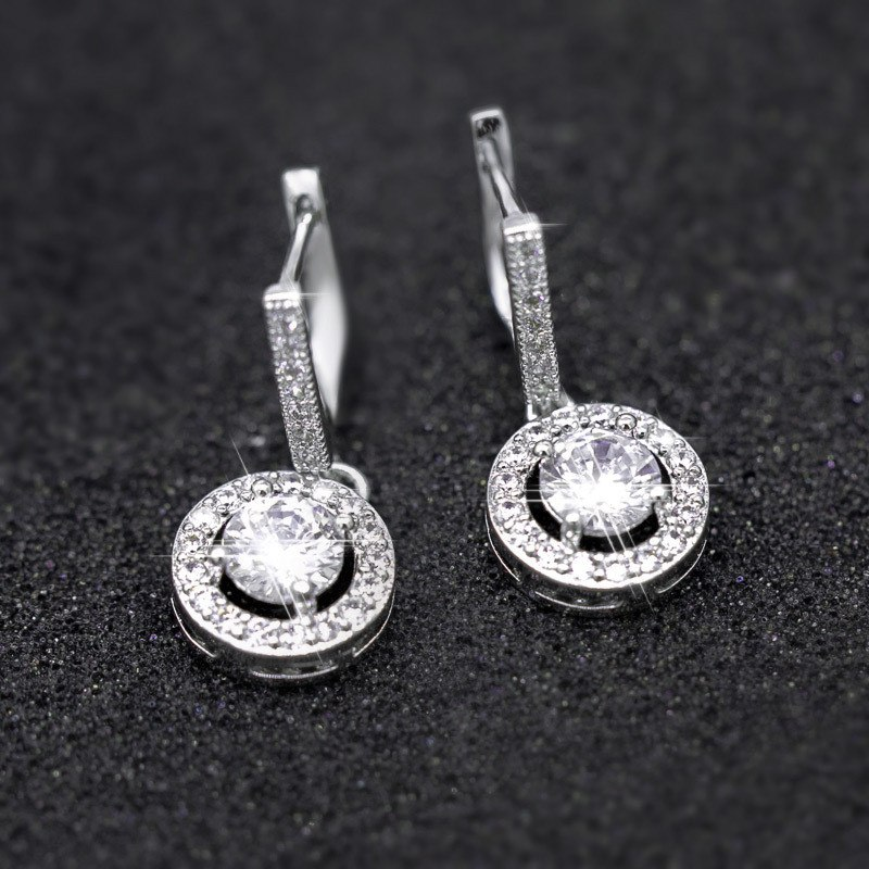 2ct Round Cut VVS1D Diamond Halo Latch Back Drop Earrings 14k White Gold Finish