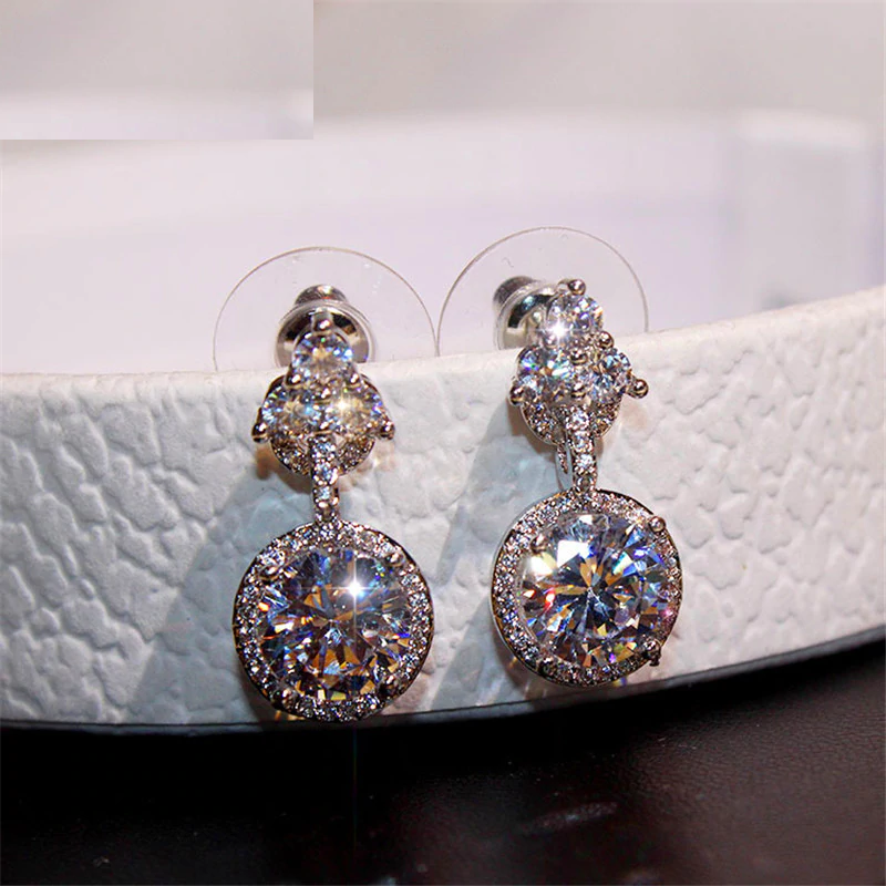 2ct Round Cut VVS1D Diamond Halo Solitaire Drop Earrings 14k White Gold Finish