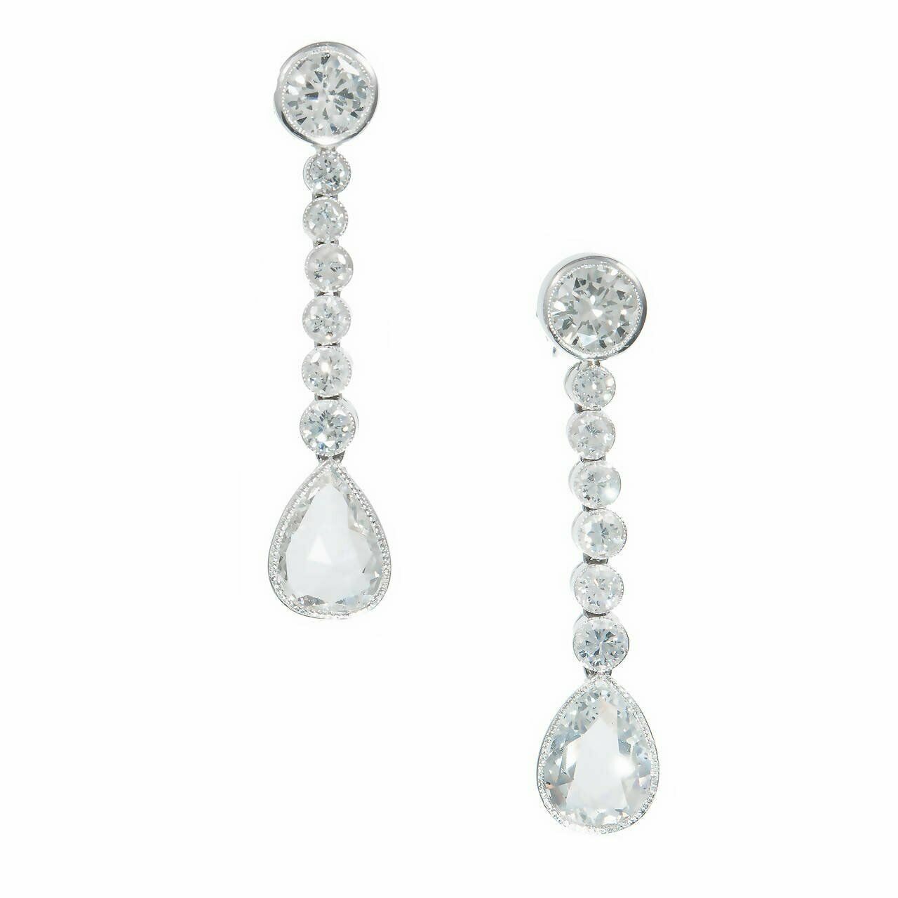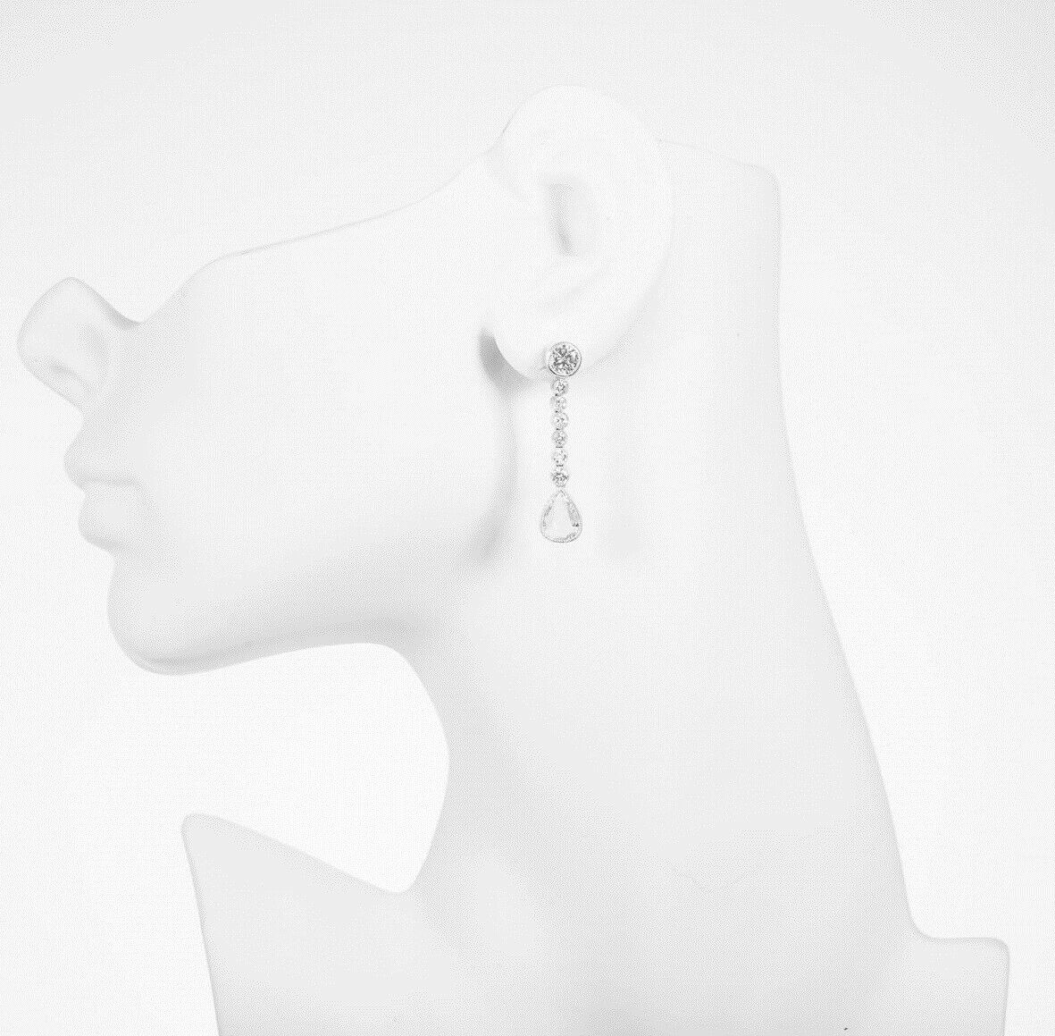 2ct Round & Pear Cut Diamond Straight Drop Dangle Earrings 14k White Gold Finish