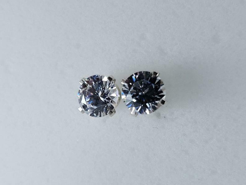 2ct Stud Earrings Round Cut Diamond Solitaire Women Design 14k White Gold Finish