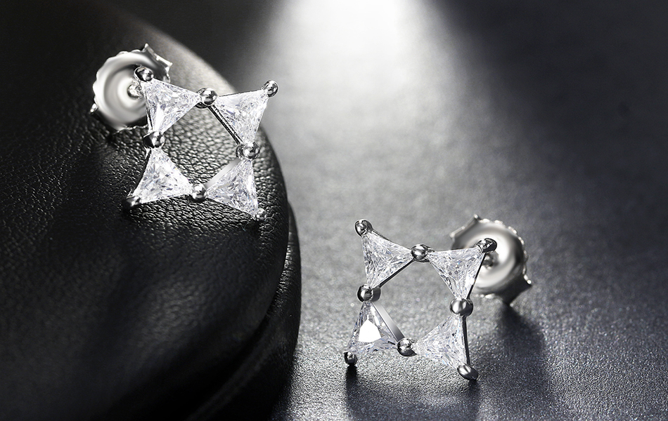 2ct Trillion Cut VVS1D Diamond Open Square Stud Earrings 14k White Gold Finish