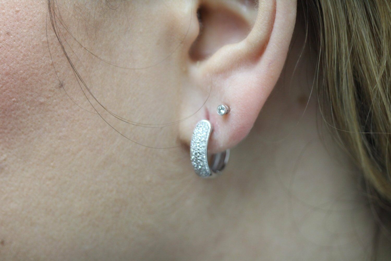 3 Row Micro Pave Set Hoop Earrings 2ct Round Cut Diamond 14k White Gold Finish