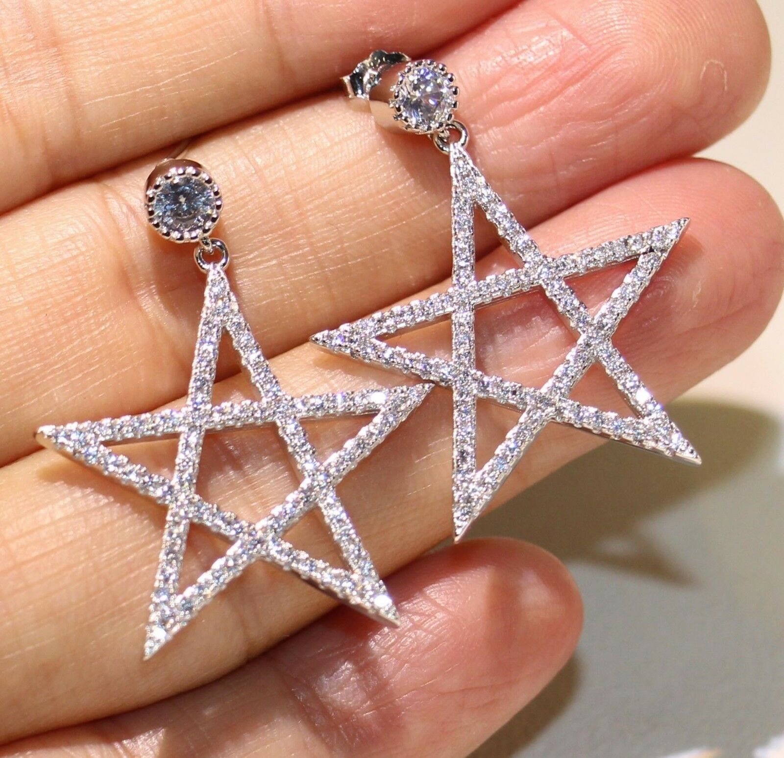 3ct Round Cut VVS1 Diamond Star Unique Design Drop Earrings 14k WhiteGold Finish