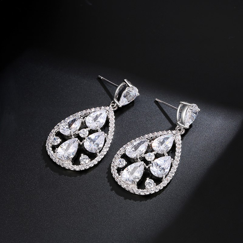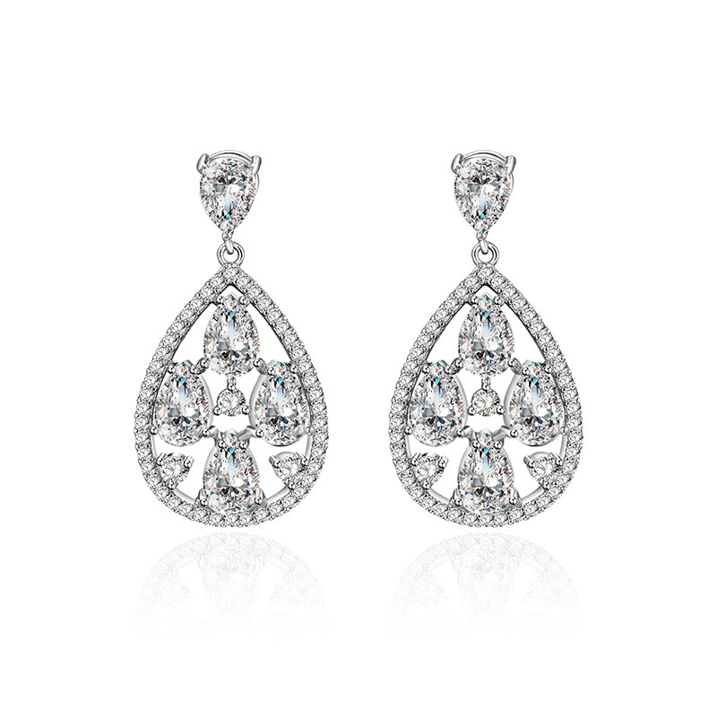 4Ct Pear Cut VVS1/D Diamond Stylish Halo Tear Drop Earring 14K White Gold Finish