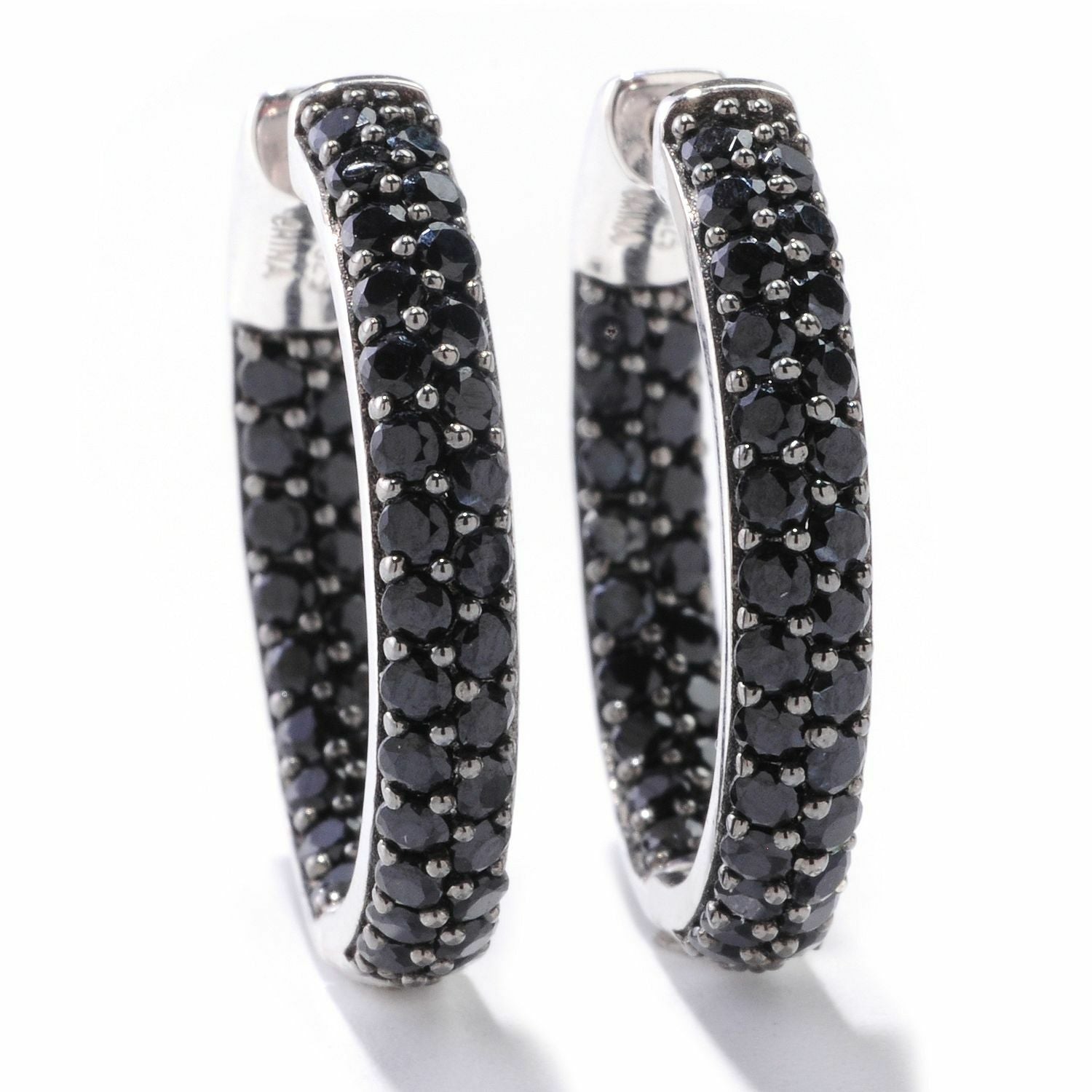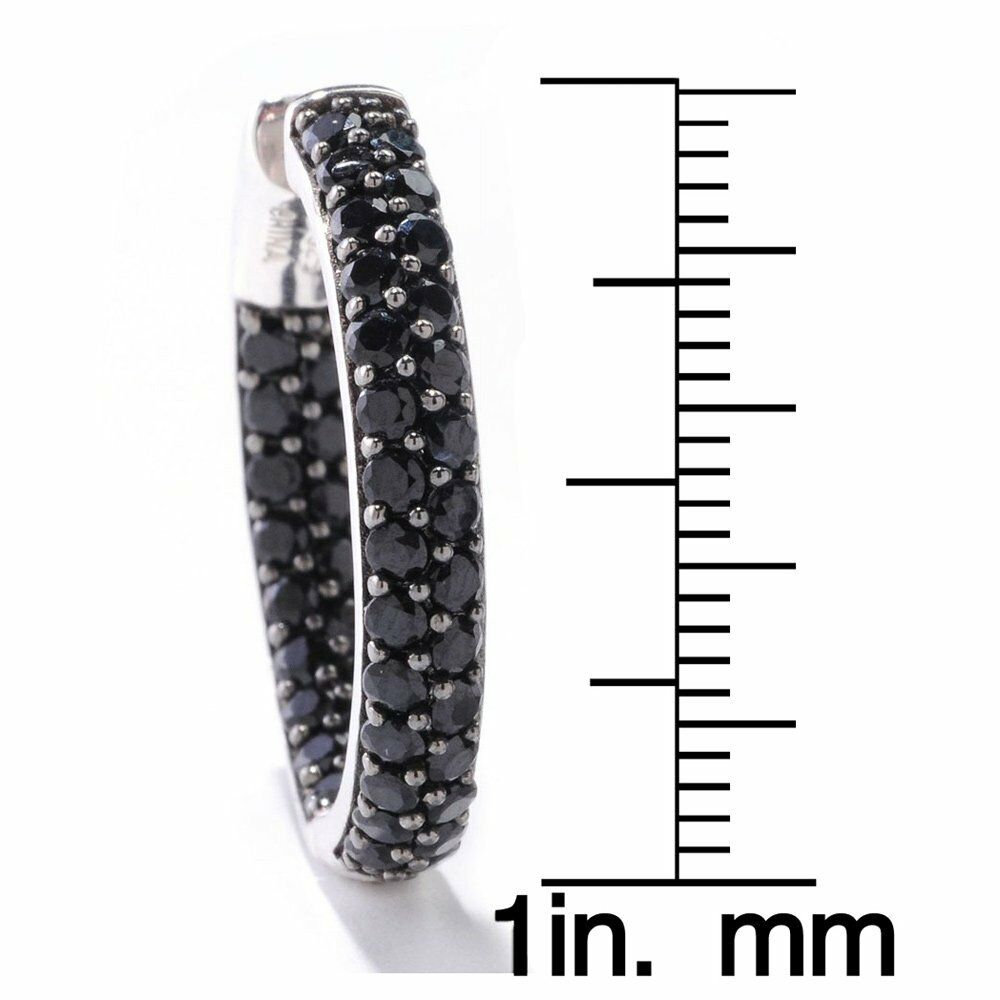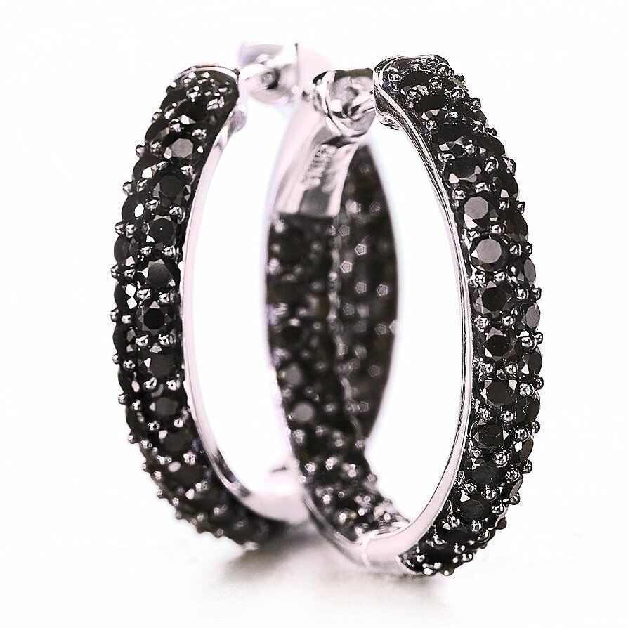 4ct Round Cut Black Diamond 2 Line Inside Out Hoop Earring 14k White Gold Finish
