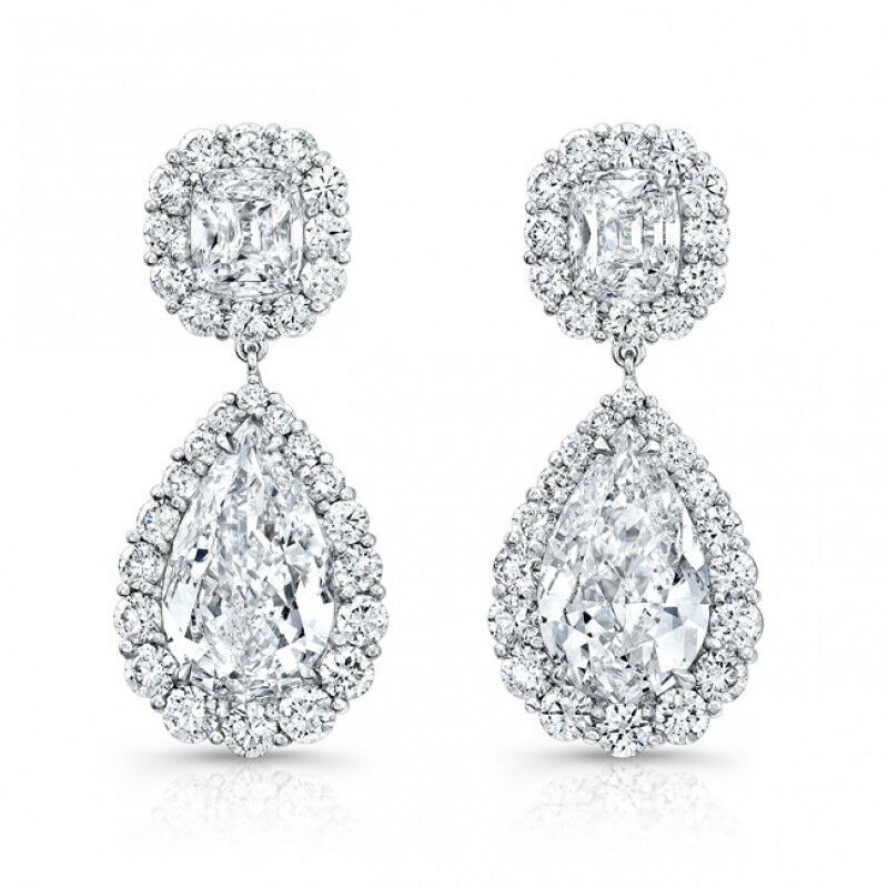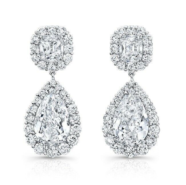 5ct Pear Cushion Cut VVS1 Diamond Halo Tear Drop Earrings 14k White Gold Finish