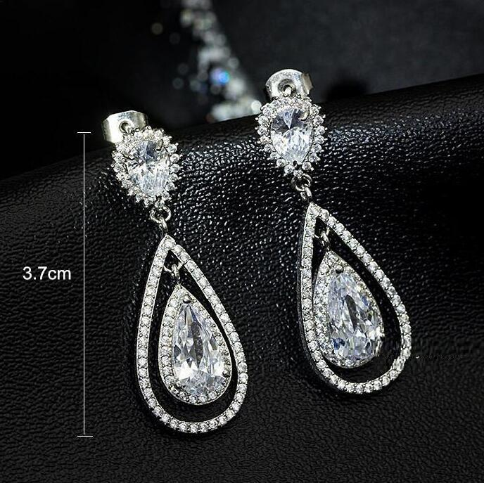 5Ct Pear Cut VVS1/D Diamond Halo Tear Drop Dangle Earrings 14K White Gold Finish
