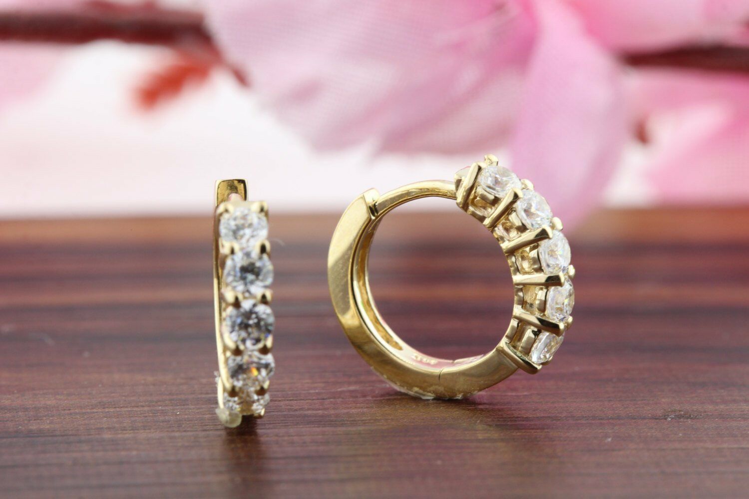 Five Stone Hoop Earrings 0.8ct Round Cut VVS1D Diamond 14k Yellow Gold Finish