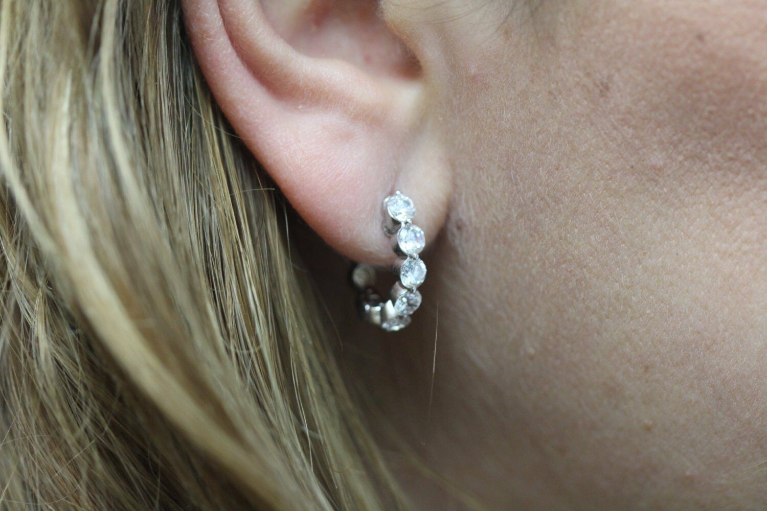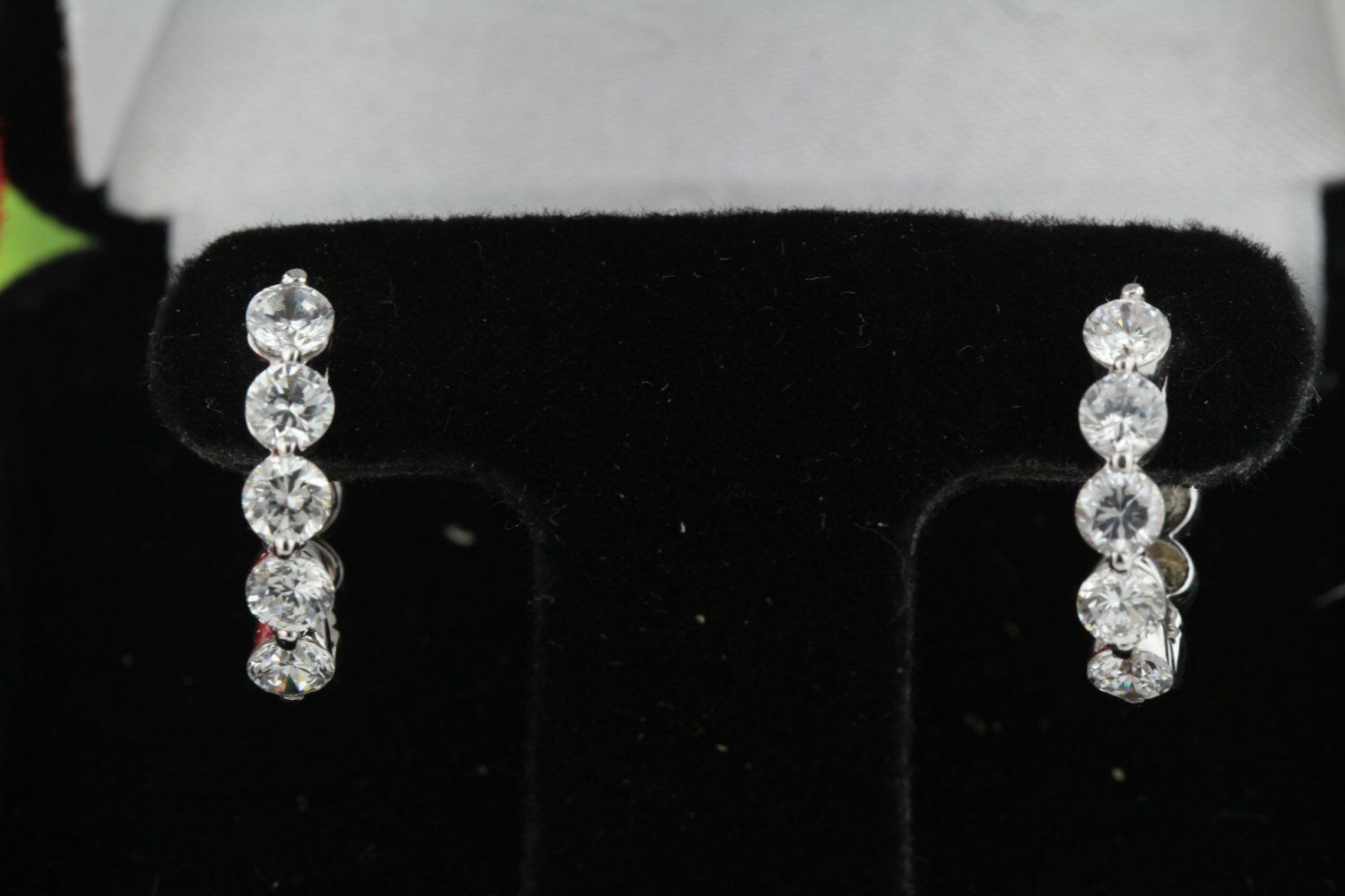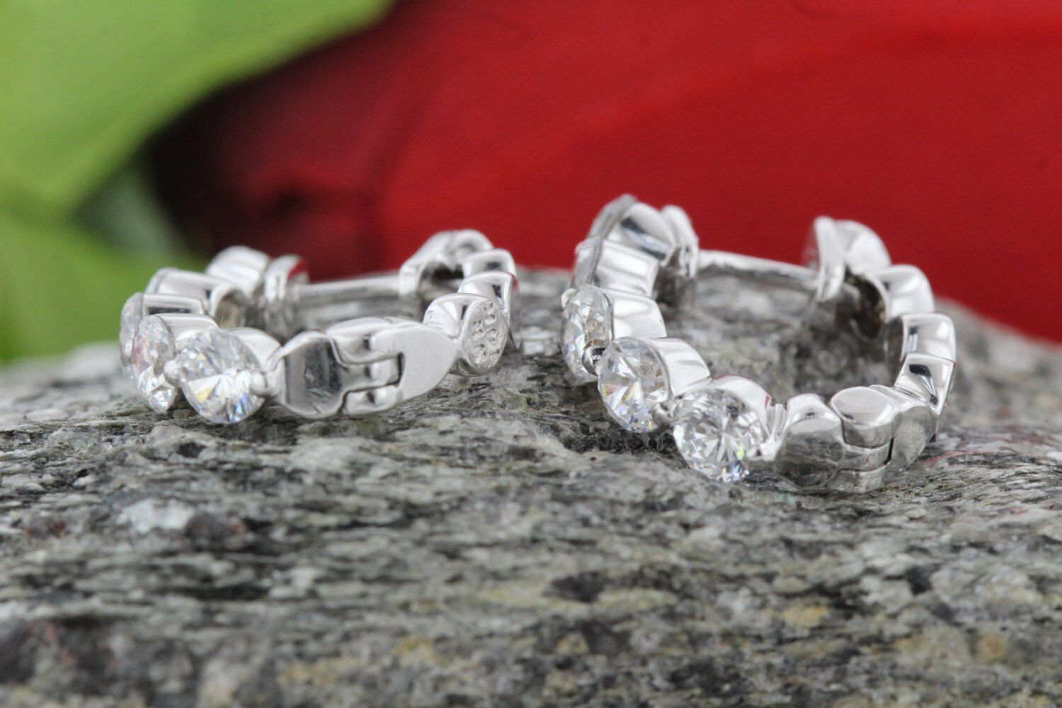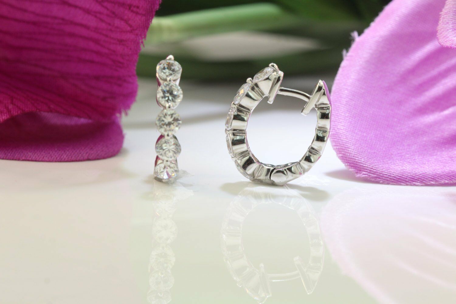 Floating Five Stone Hoop Earrings 0.9ct Round Cut Diamond 14k White Gold Finish