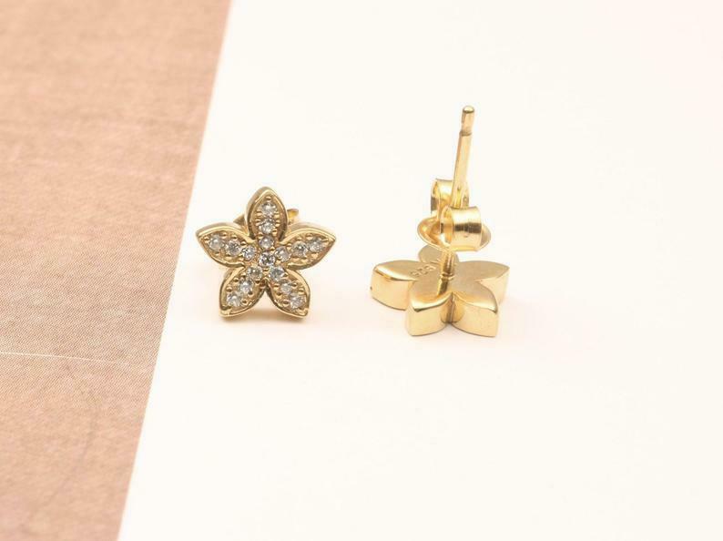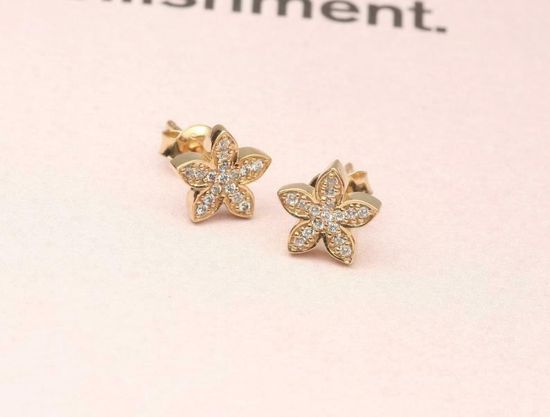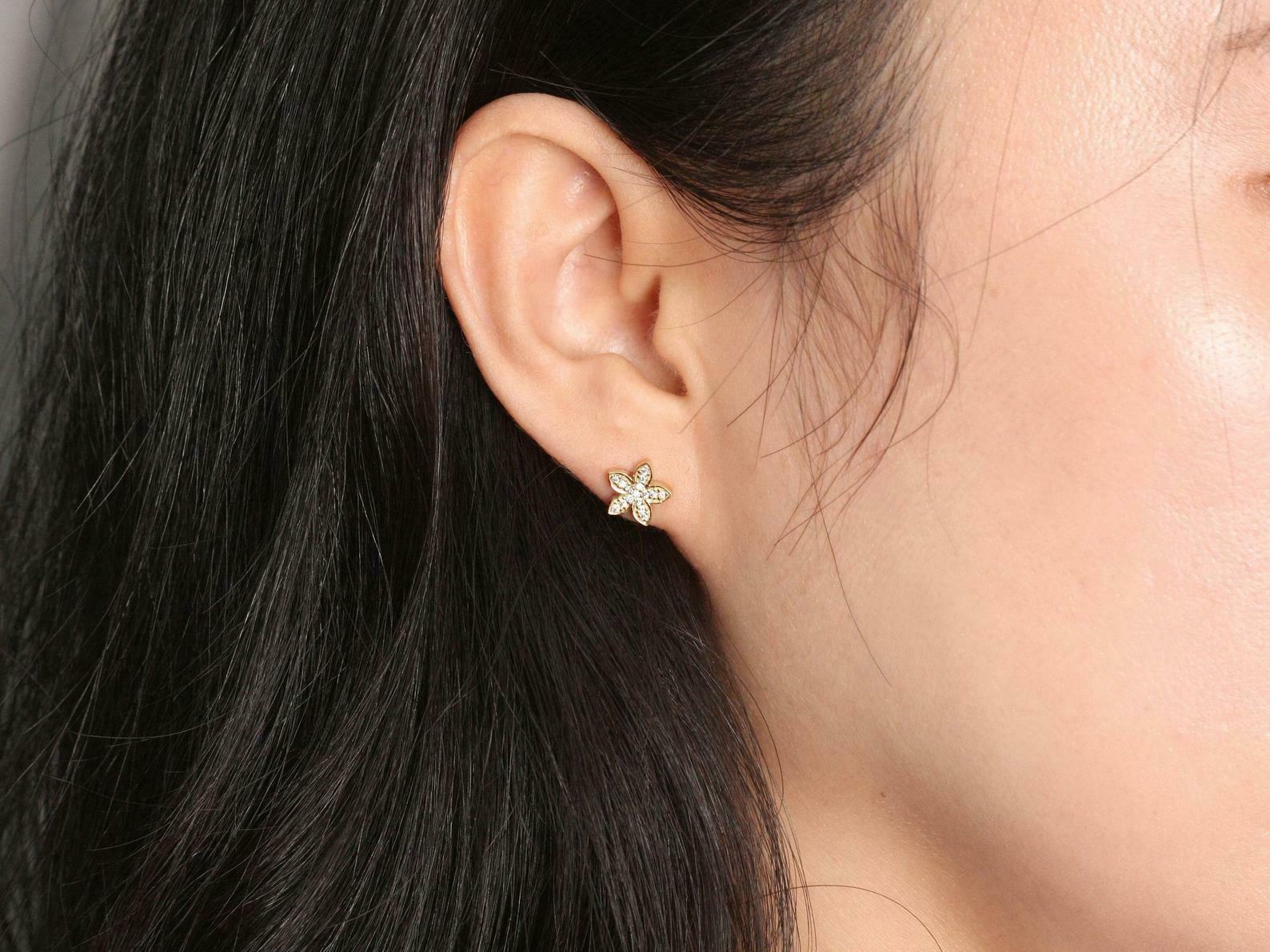 Flower Design Stud Earrings 1ct Round Cut VVS1D Diamond 14k Yellow Gold Finish
