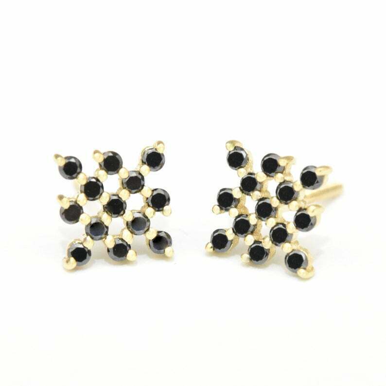 Net Mesh Square Design Stud Earrings 1ct Round Black Diamond 14k YellowGold Over