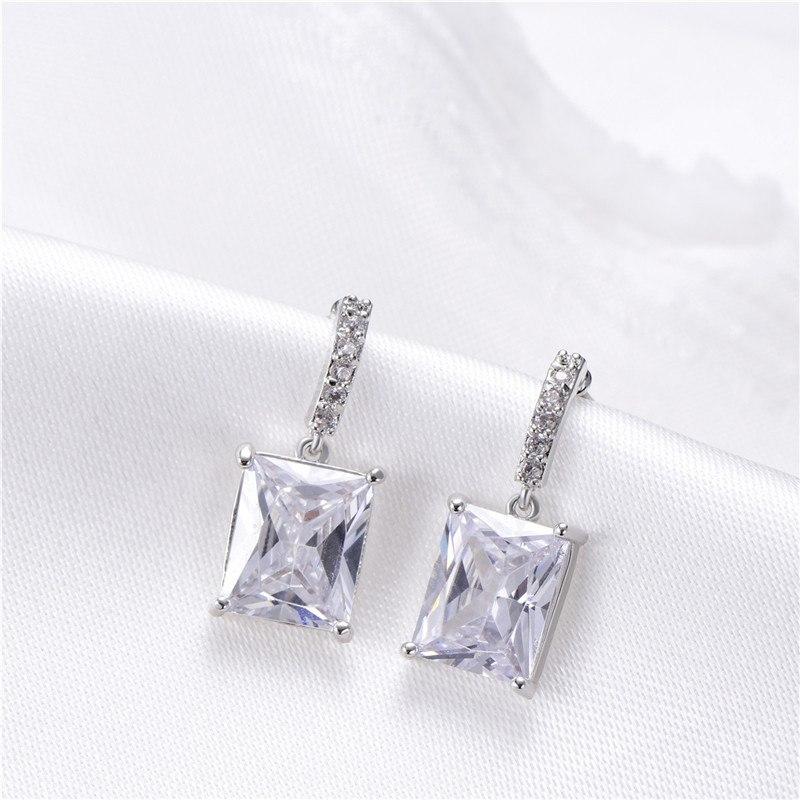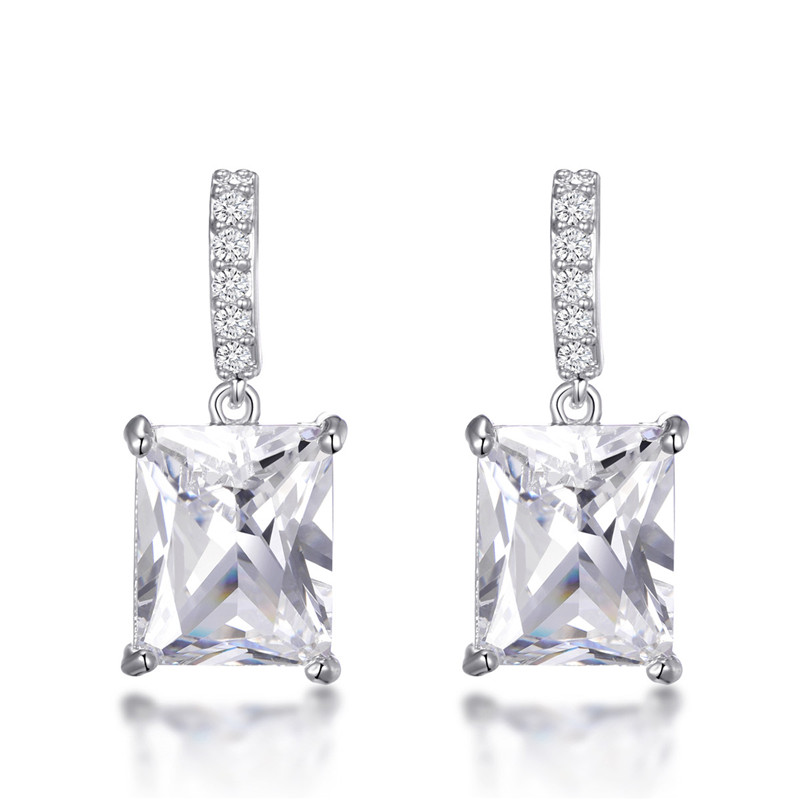 Solitaire Drop Earrings 1.9ct Emerald Cut VVS1D Diamond 14k White Gold Finish