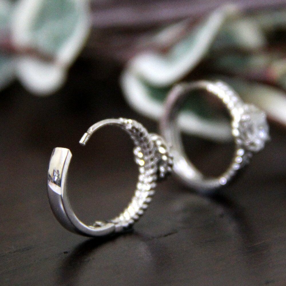 Solitaire Hoop Huggies Earrings 0.5ct Round Cut Diamond 14k White Gold Finish