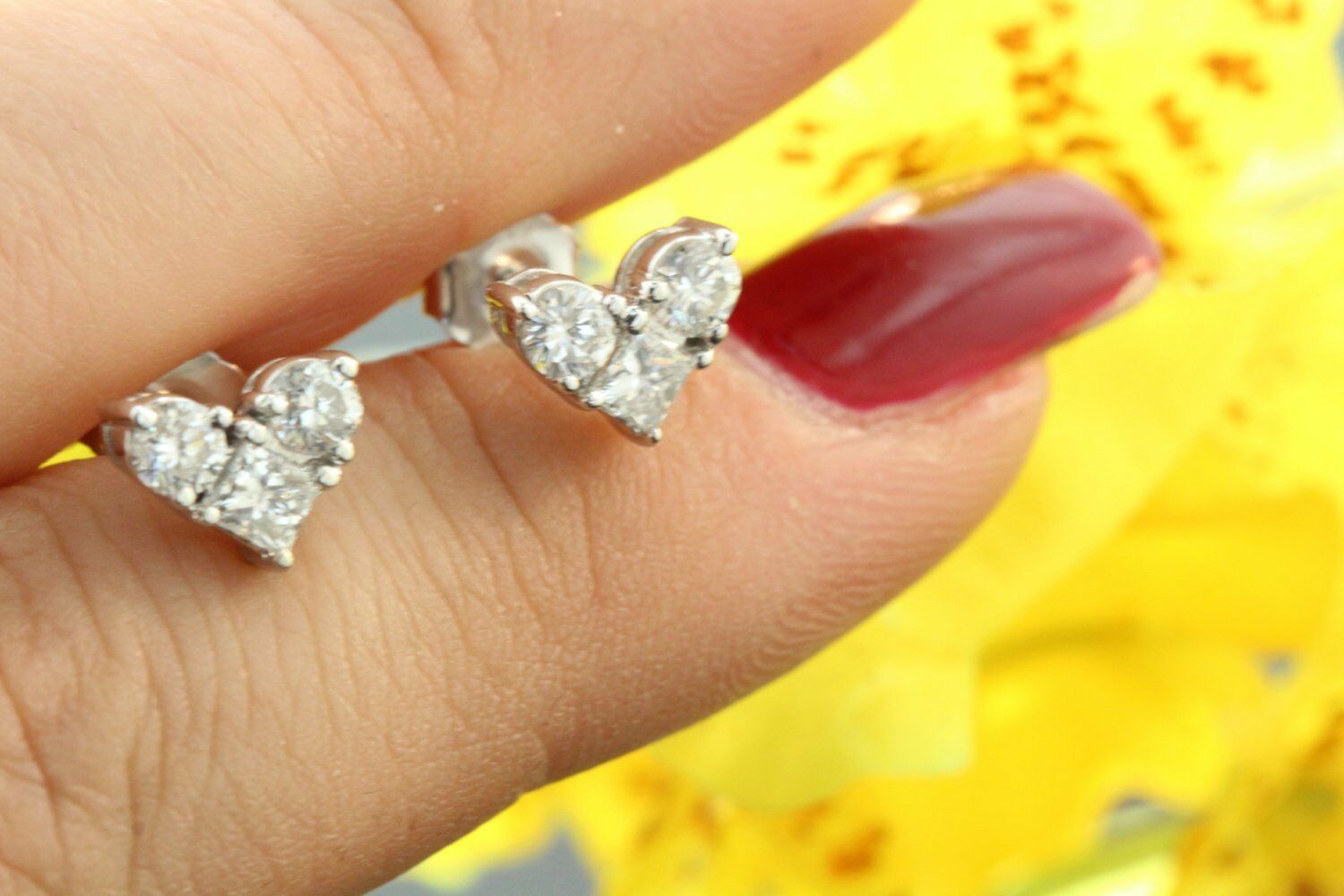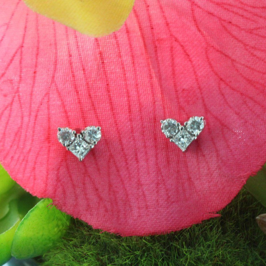 Tiny Heart Design Stud Earrings 0.9ct Princess Cut Diamond 14k White Gold Finish