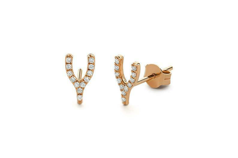 Wishbone Good Luck Stud Earrings 1.2ct Round Cut Diamond 14k Yellow Gold Finish