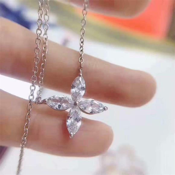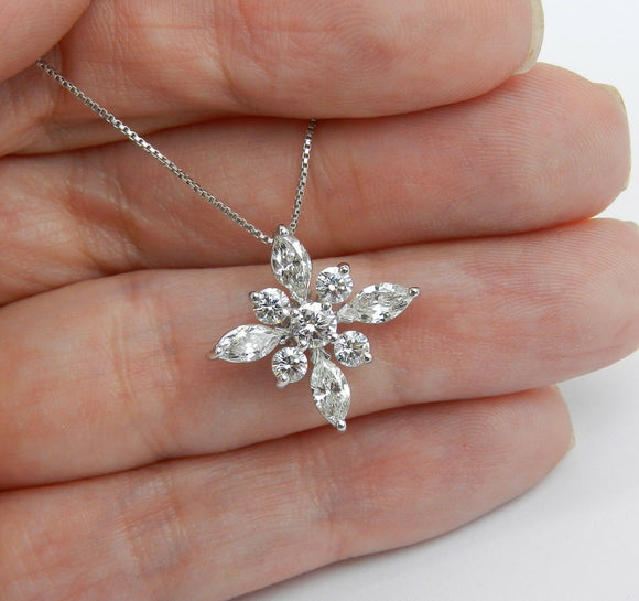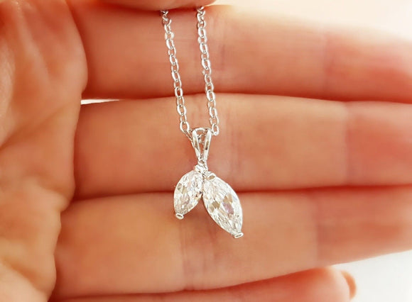 1.6ct Marquise Cut Diamond Pendant Chain Petite Floral Leaf 14k WhiteGold Finish