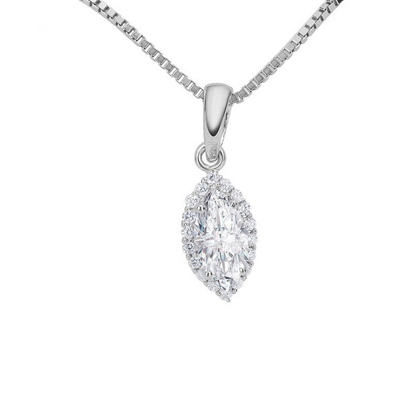 1ct Marquise Cut Diamond Trilogy Minimal Pendant with Chain 14k WhiteGold Finish