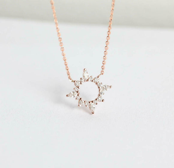 1.4ct Marquise Cut Diamond Pendant with Chain Open Circle 14k Rose Gold Finish