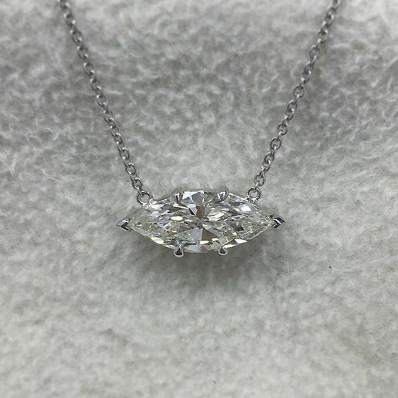2Ct Marquise Cut VVS1 Diamond Horizontal Eye Pendant Chain 14K White Gold Finish