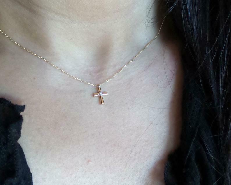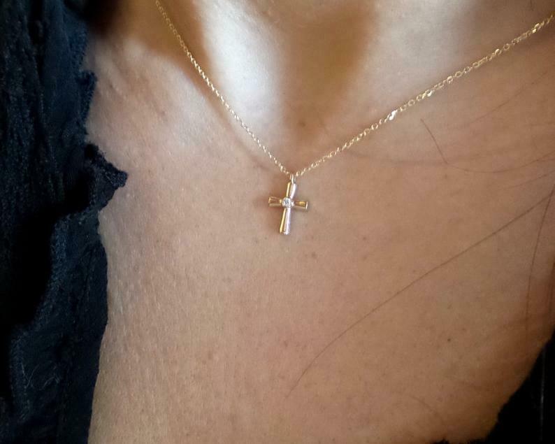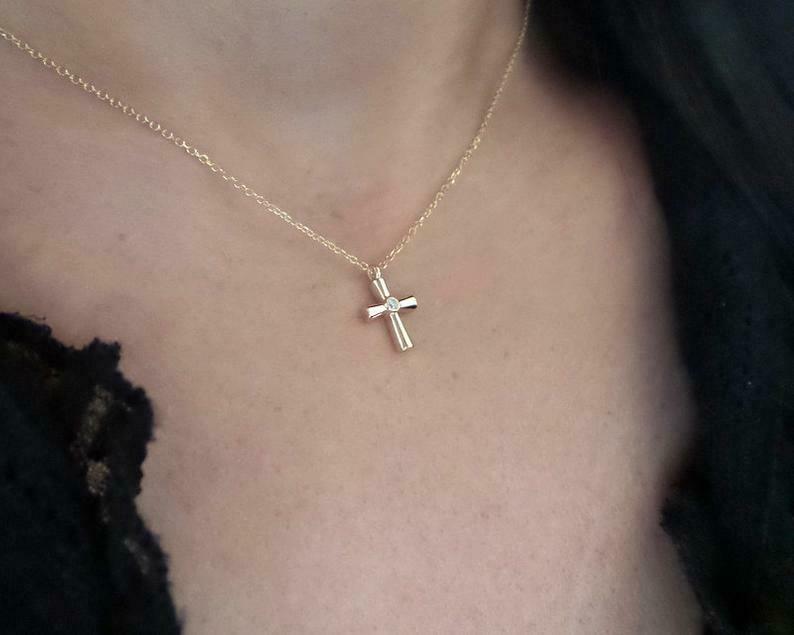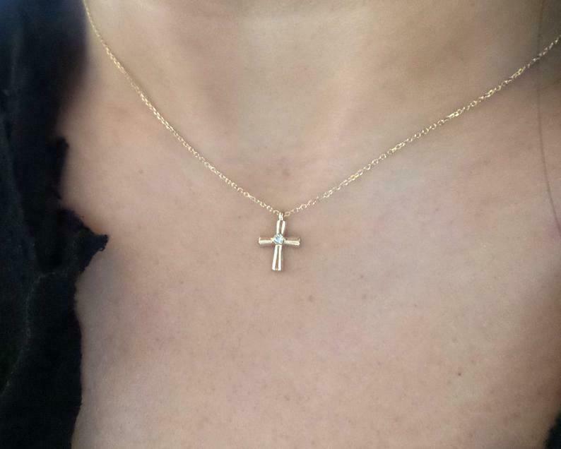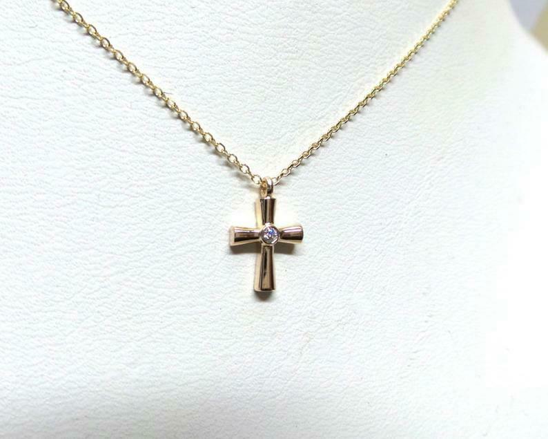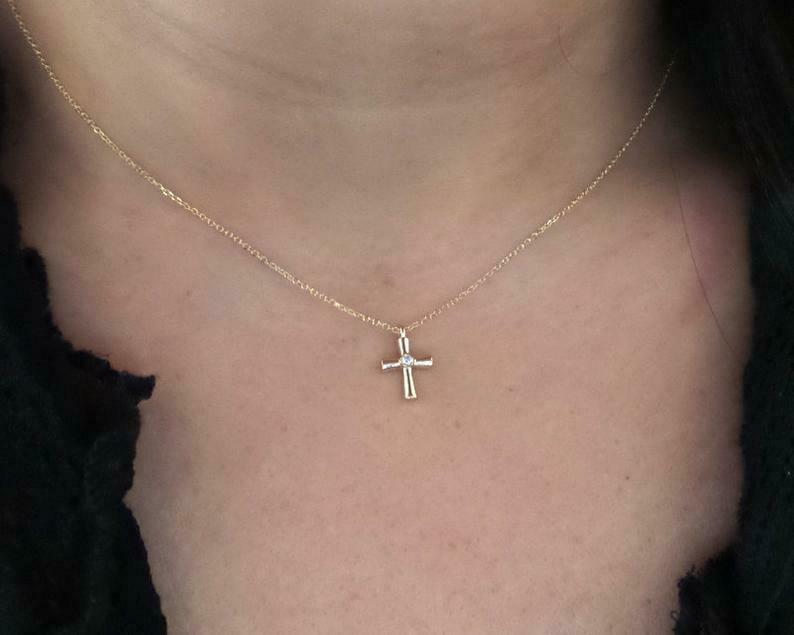 0.1ct Round Cut VVS1D Diamond Holy Cross Pendant with Chain 14k Yellow Gold Over