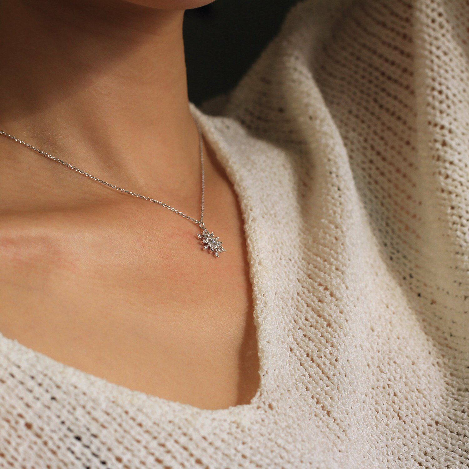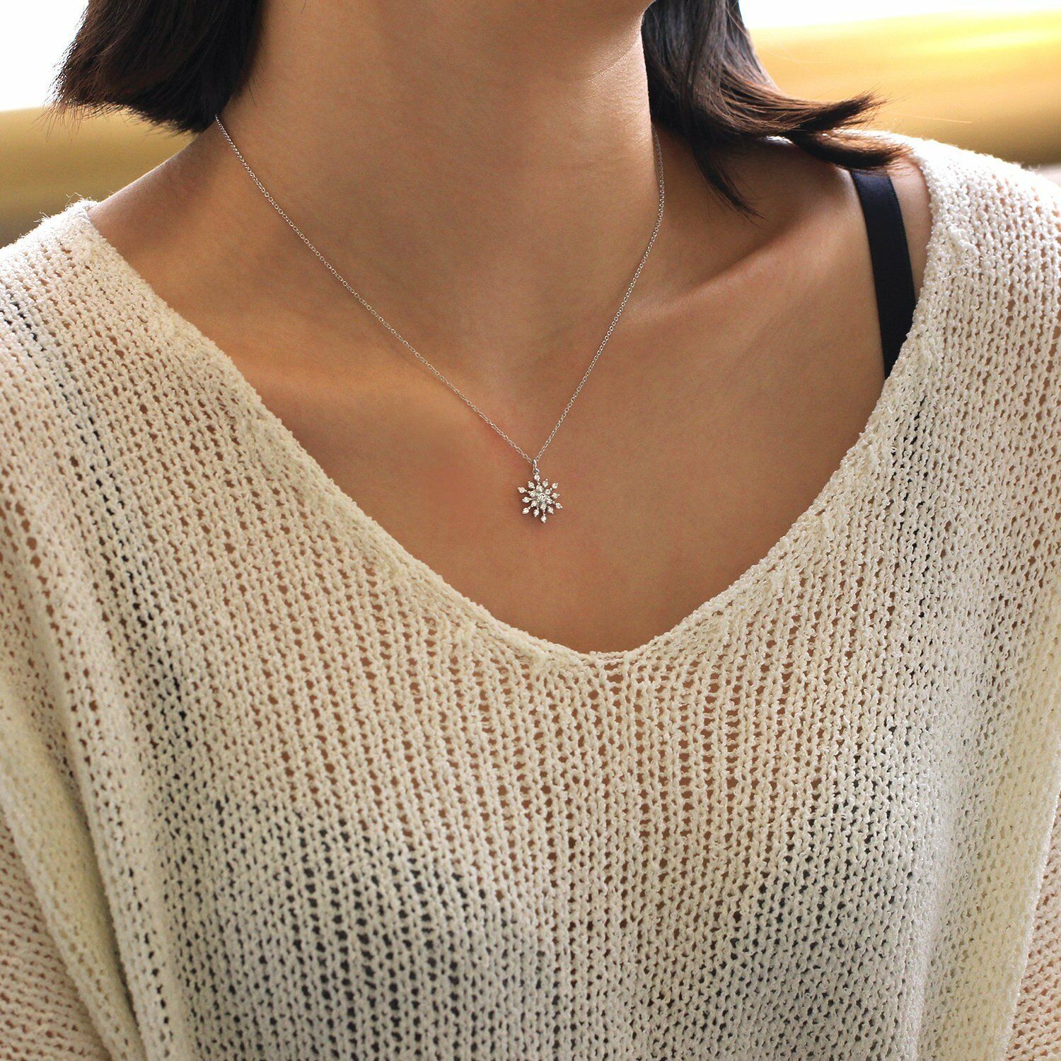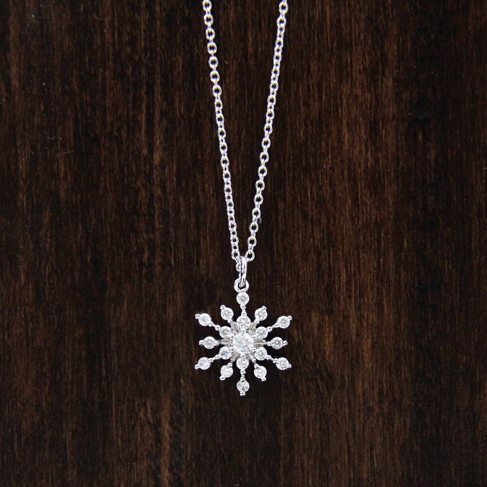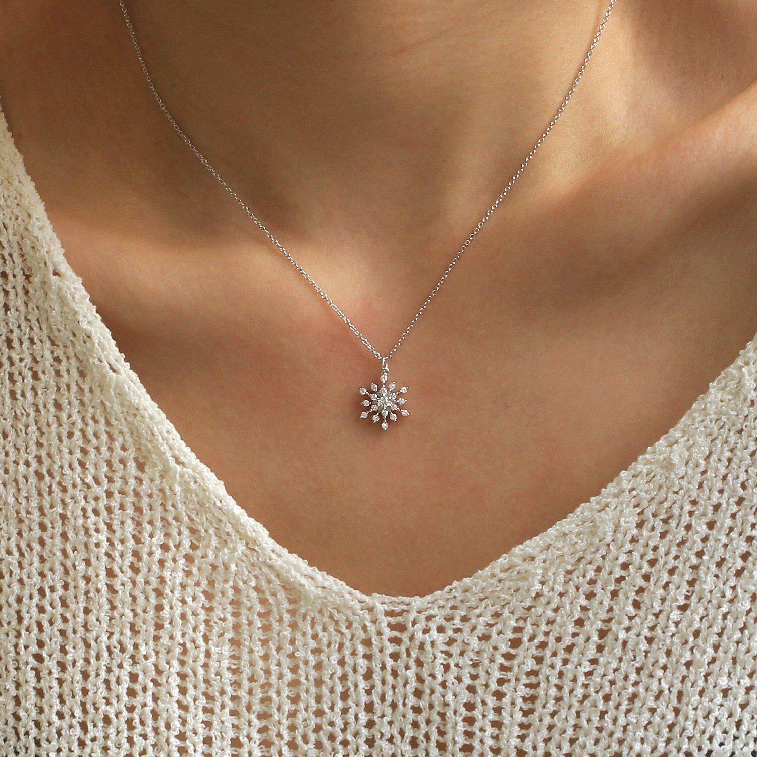 0.28ct Round Diamond Snowflake & Flower Pendant 14k White Gold Finish NO CHAIN