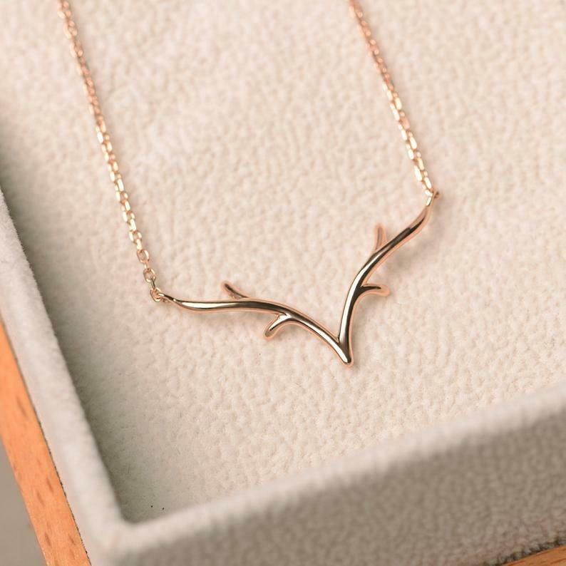 0.5ct Diamond Pendant with Chain Round Cut Deer Stag 14k Rose Gold Finish