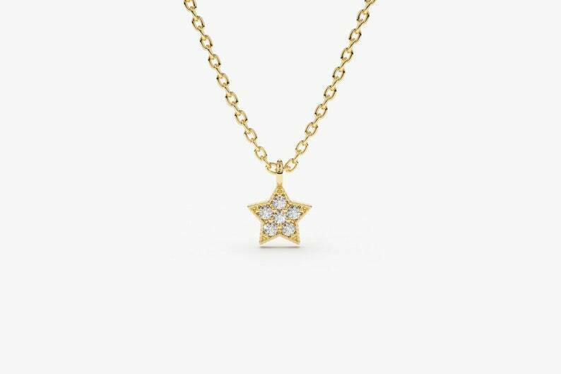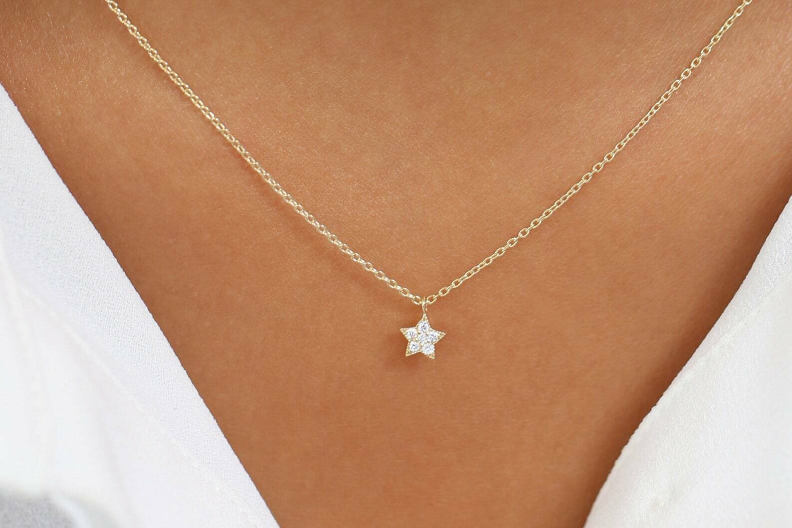 0.5ct Diamond Pendant with Chain Round Cut Star Design 14k Yellow Gold Finish