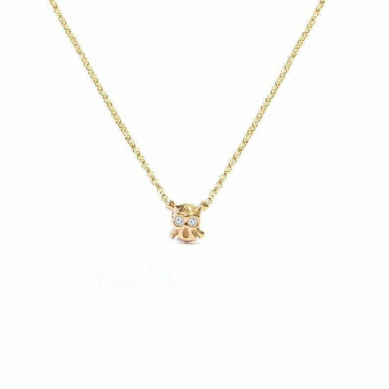 0.5ct Round Cut Diamond Pendant with Chain Skull Design 14k White Gold Finish