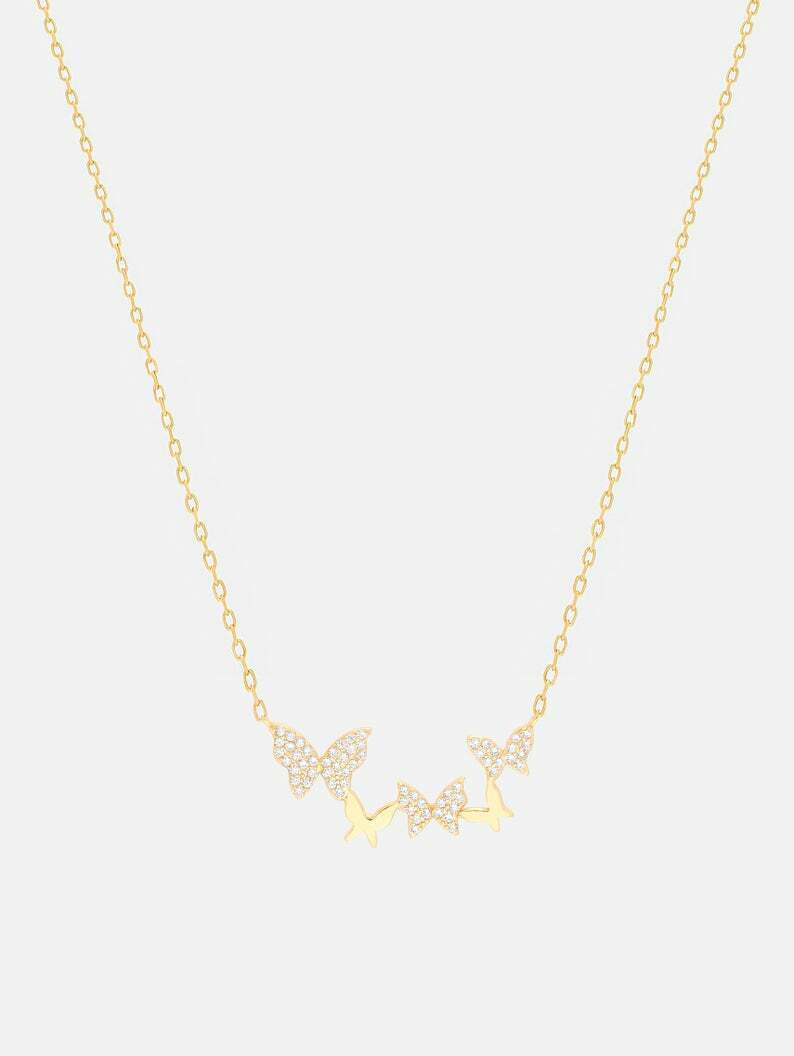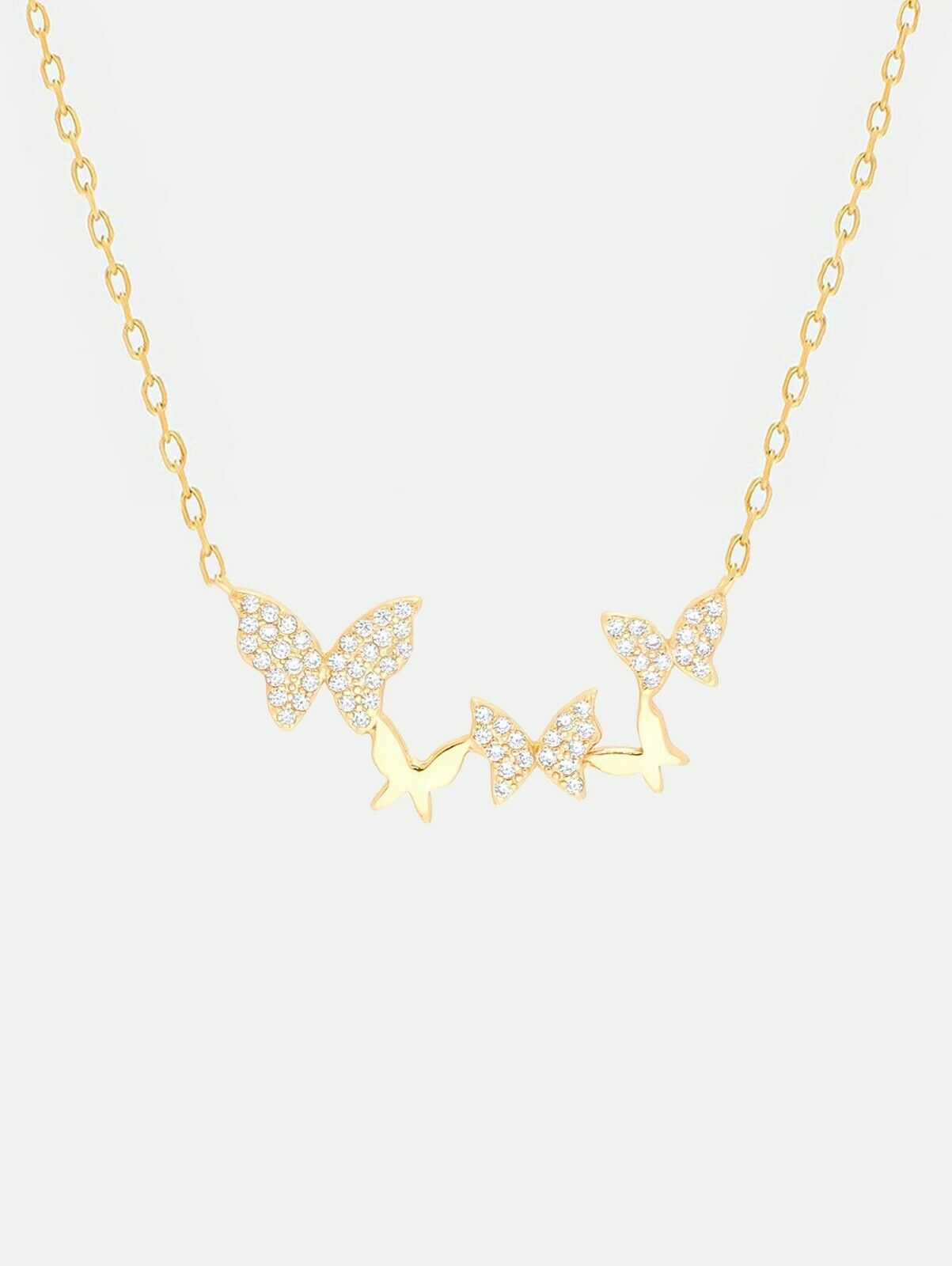 0.6ct Diamond Pendant with Chain Round Cut Butterfly Cute 14k Yellow Gold Finish