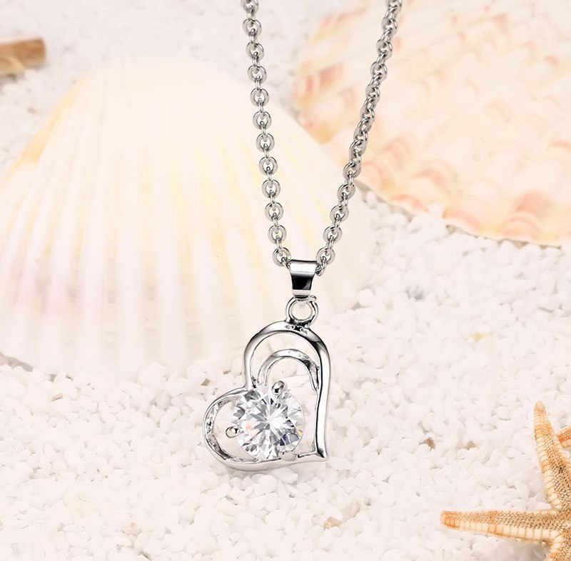 0.6ct Round Cut Diamond Pendant Chain Heart Shape Design 14k White Gold Finish