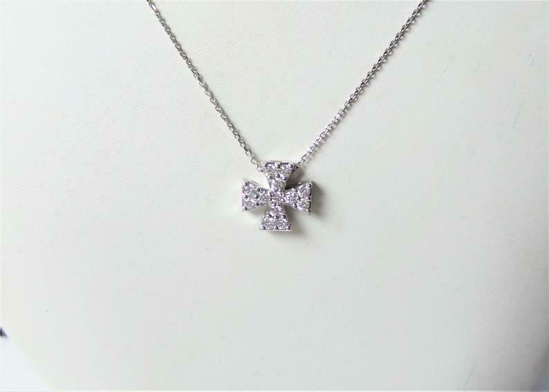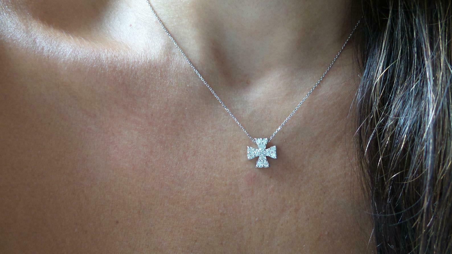 0.7ct Diamond Pendant with Chain Round Cut Brilliant Floral 14k WhiteGold Finish