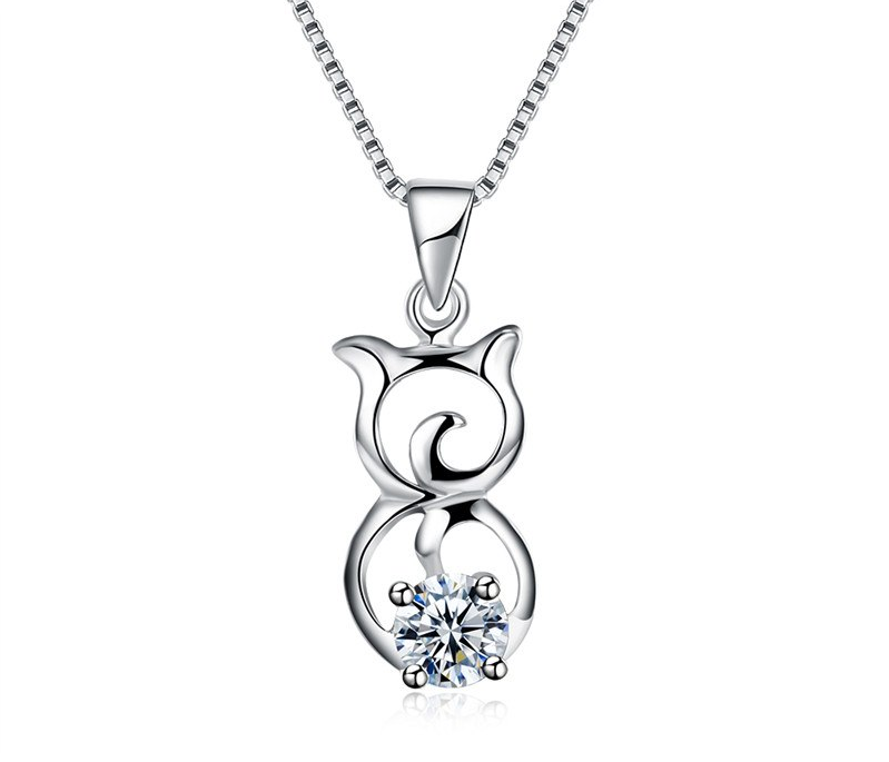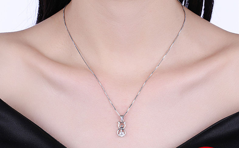 0.7ct Round Cut VVS1D Diamond Pendant Cat Design 14k White Gold Finish NO CHAIN