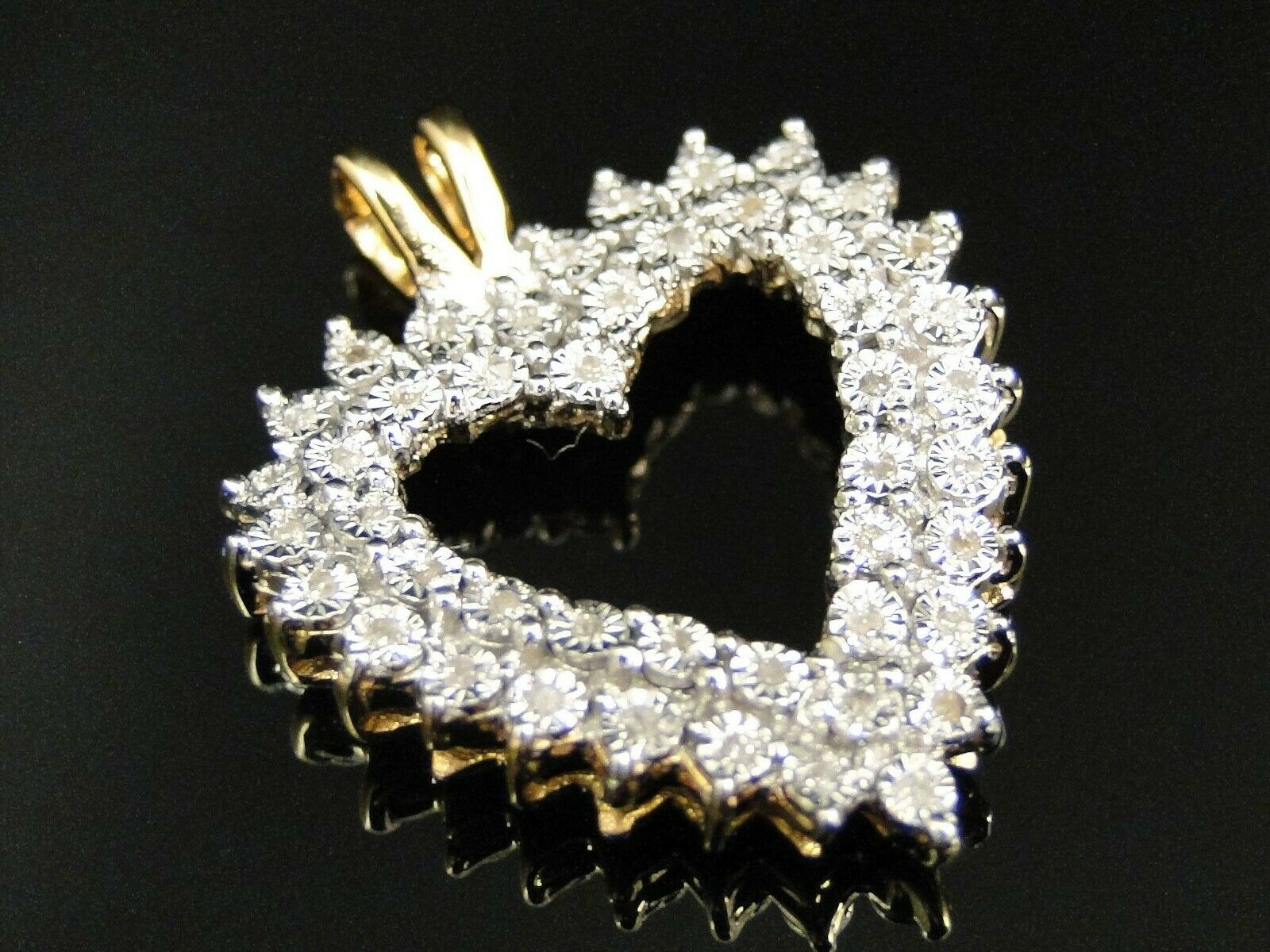 0.7ct Round Cut VVS1D Diamond Pendant Heart Shaped 14k Yellow Gold Over NO CHAIN