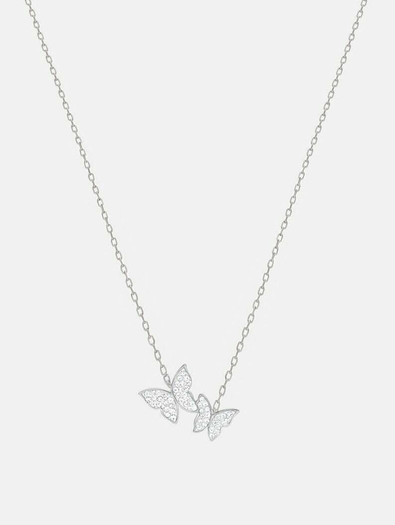 0.8ct Diamond Pendant with Chain Round Cut Dual Butterfly 14k White Gold Finish