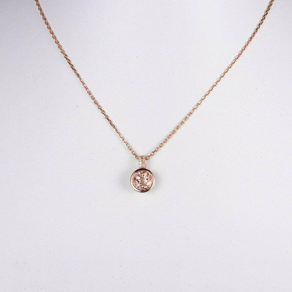 1.2ct Round Cut Diamond Pendant with Chain Bezel Solitaire 14k Rose Gold Finish